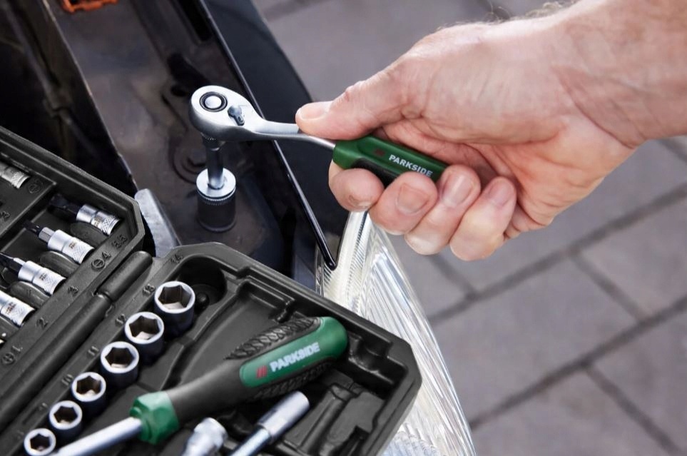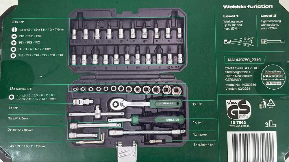 Набор клавиш сокетов Parkside® с грабительником, функцией Wobbler, 46 элементов