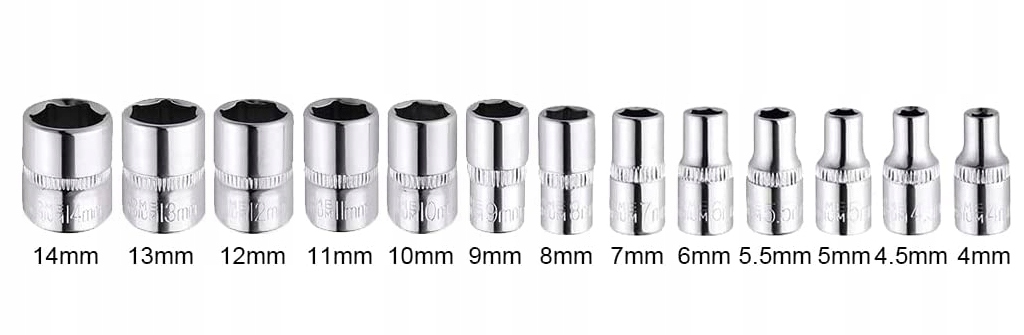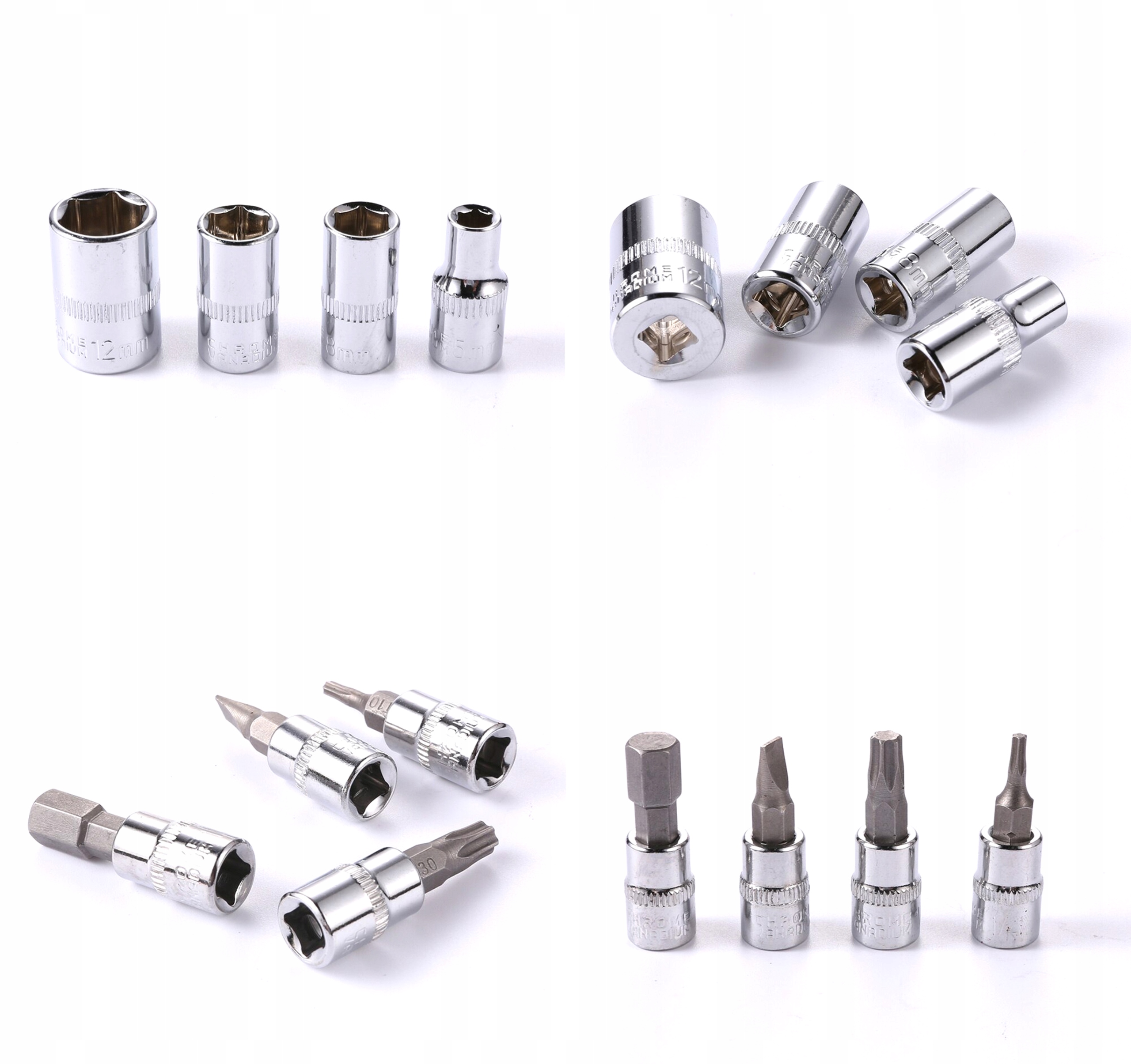 Набор торцовых ключей на 1/4 дюйма состоит из 46 элементов, изготовленных из высококачественной хромованадиевой стали.