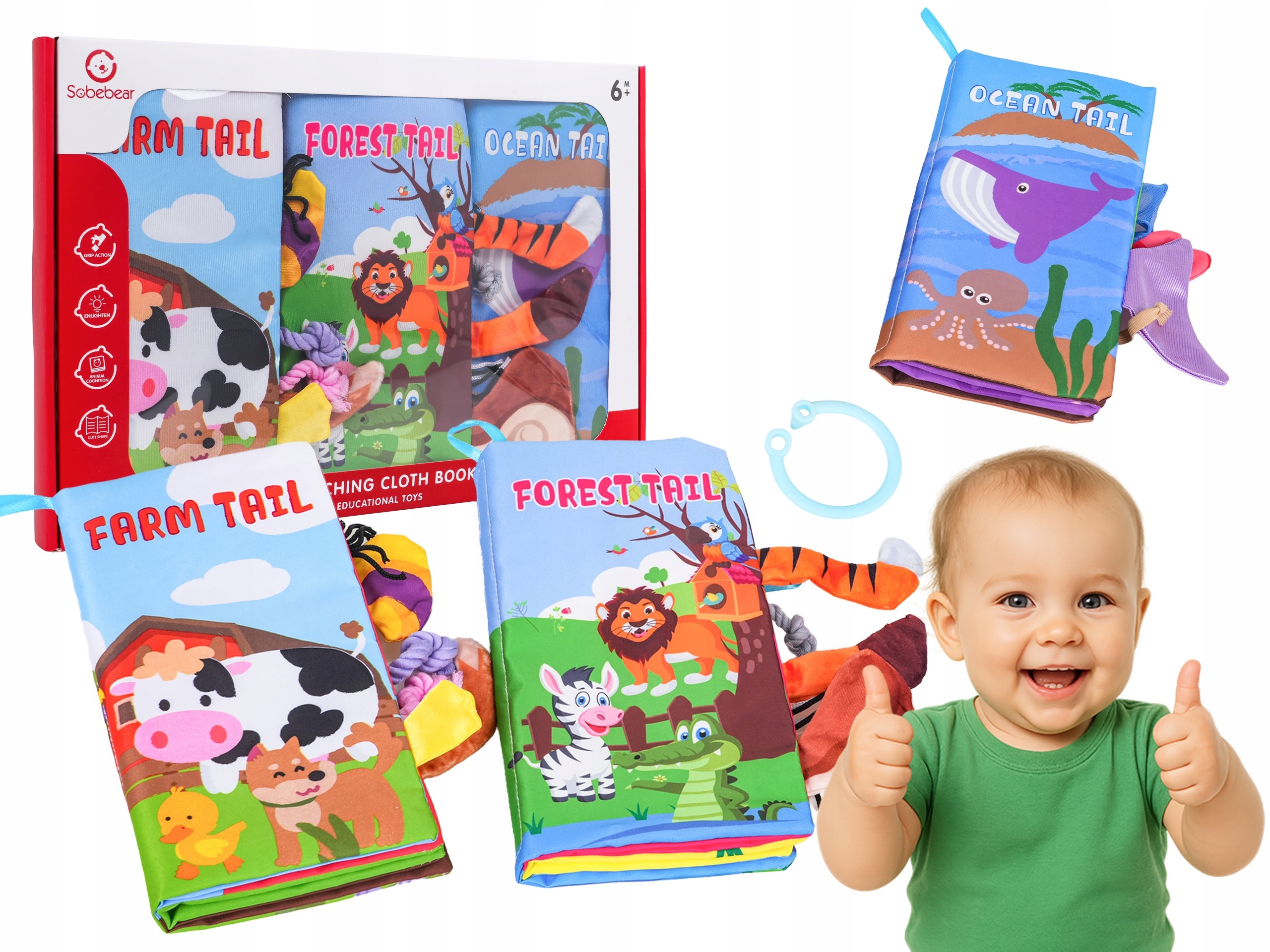• ✅ 3 мягкие книжки с хвостами животных,