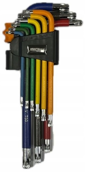 Набор разноцветных шестигранных ключей Kraft&Dele, модель KD11930, со специальным наконечником с отверстием, адаптированным для работы с винтами TORX.