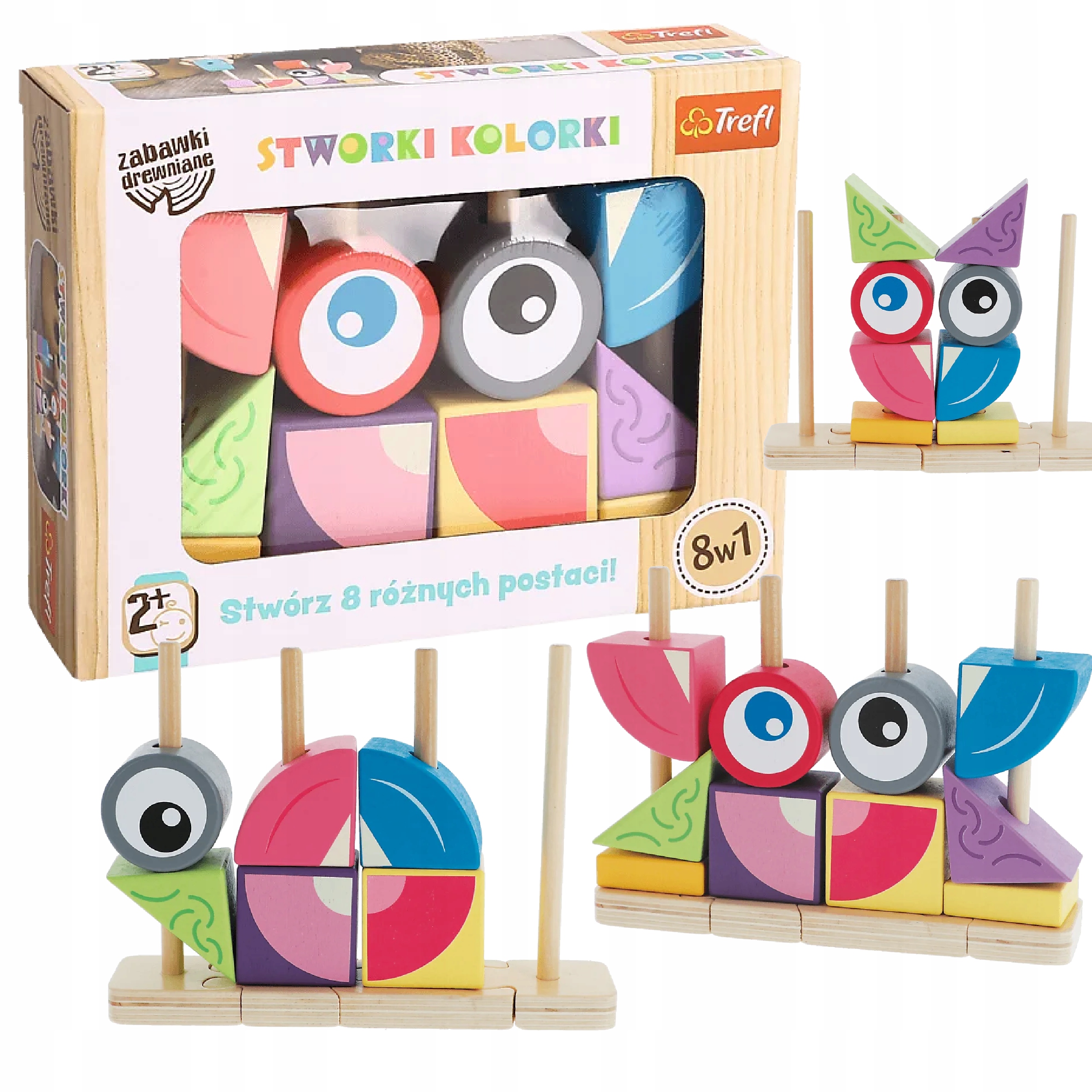 Набір кольорових блоків TREFL Creatures Colours Дерев'яний пазл 14 елементів.