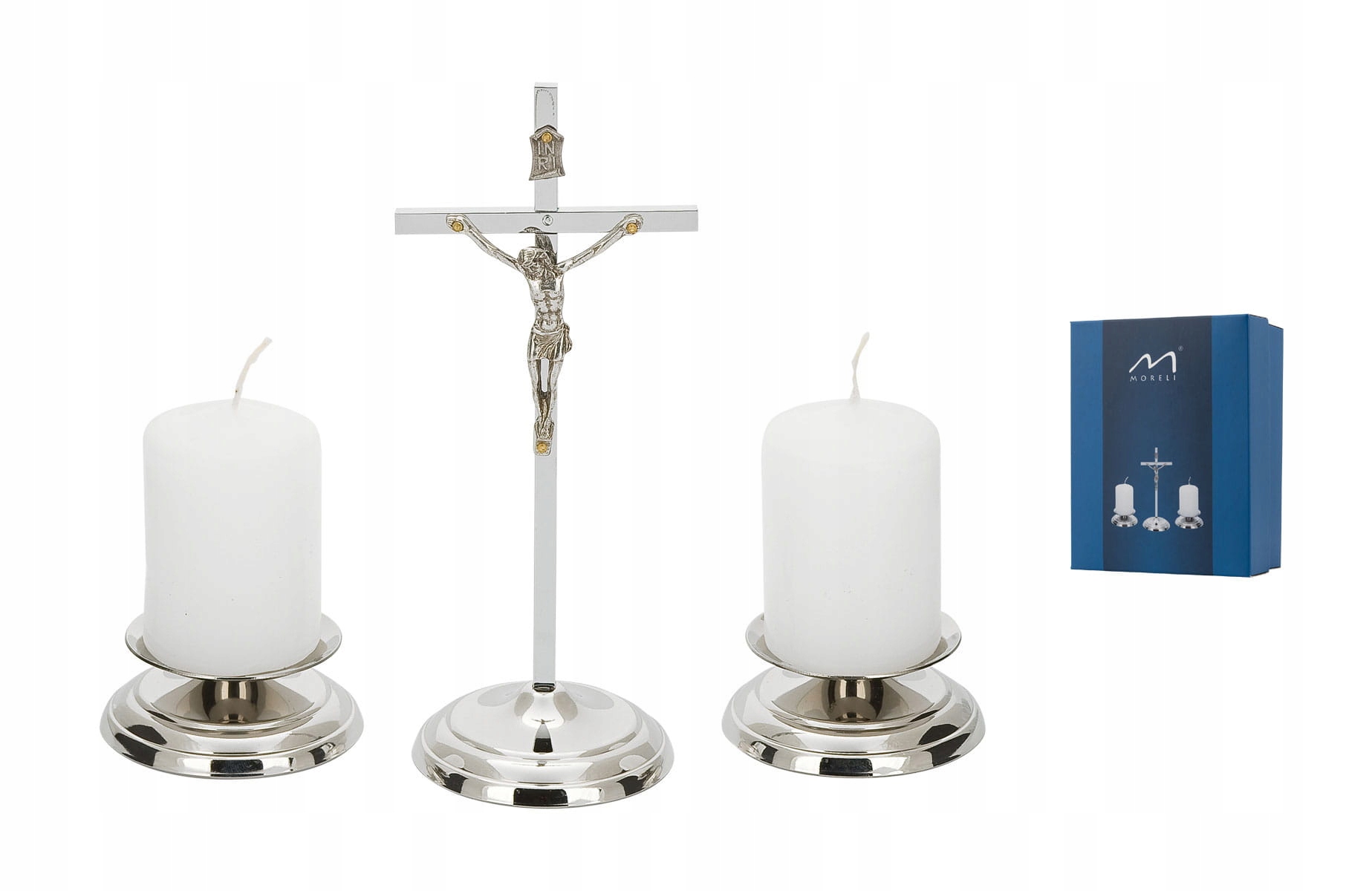 Серебряный набор «Рождественская песнь» - современный - два серебряных подсвечника, стоячий крест, две белые свечи + ороситель - Абрикос - нержавеющая сталь