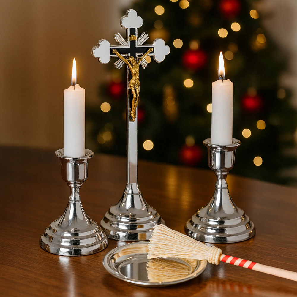 Уникальный серебряный набор колядок из металла, идеально подходящий для рождественских традиций. В него входят крест и бесплатные свечи, чаша и ороситель, необходимые для колядования в каждом доме. Набор «Рождественские колядки» отличается эстетичным исполнением и прочностью, что обеспечивает длительное использование. Набор упакован в декоративную коробку, что делает его идеальным в качестве подарка.