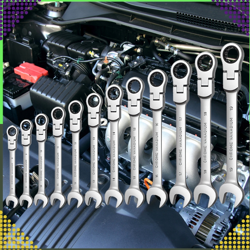➡️ Применение набора комбинированных ключей с храповым механизмом: