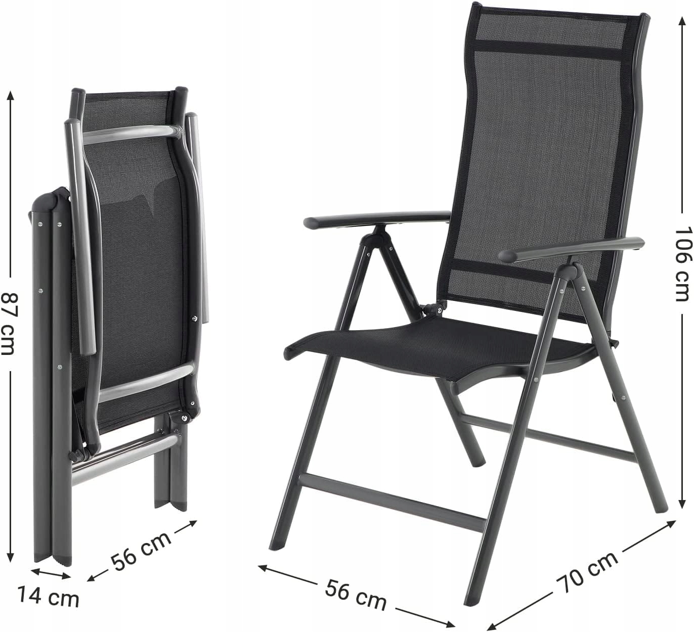 Набор складных стульев, садовых кресел, черный, 2 шт