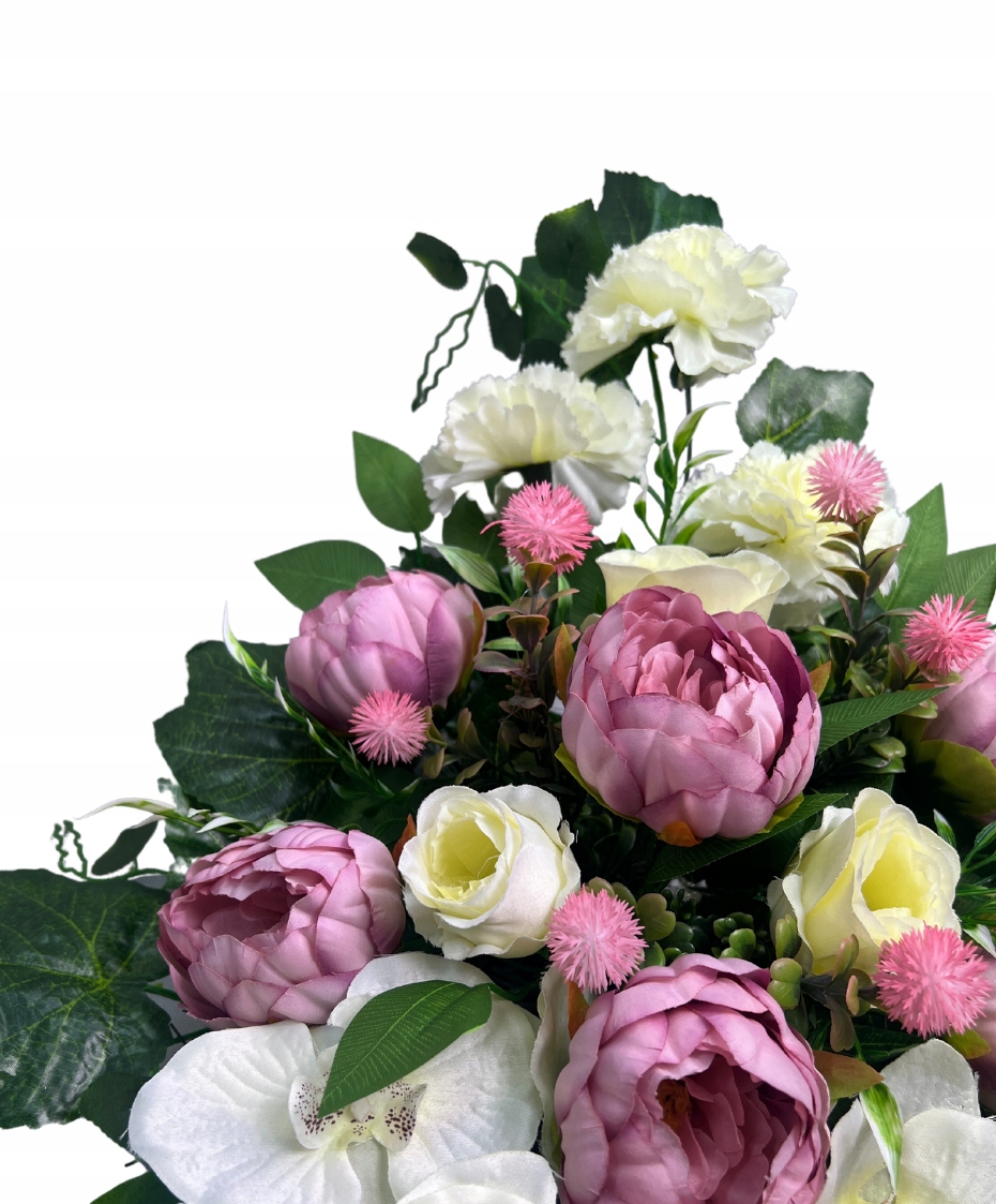 Надгробие с букетом выполнено из высококачественных искусственных цветов, которые вместе создайте уникальный цветочный декор, сочетающий в себе элегантность и утонченность.