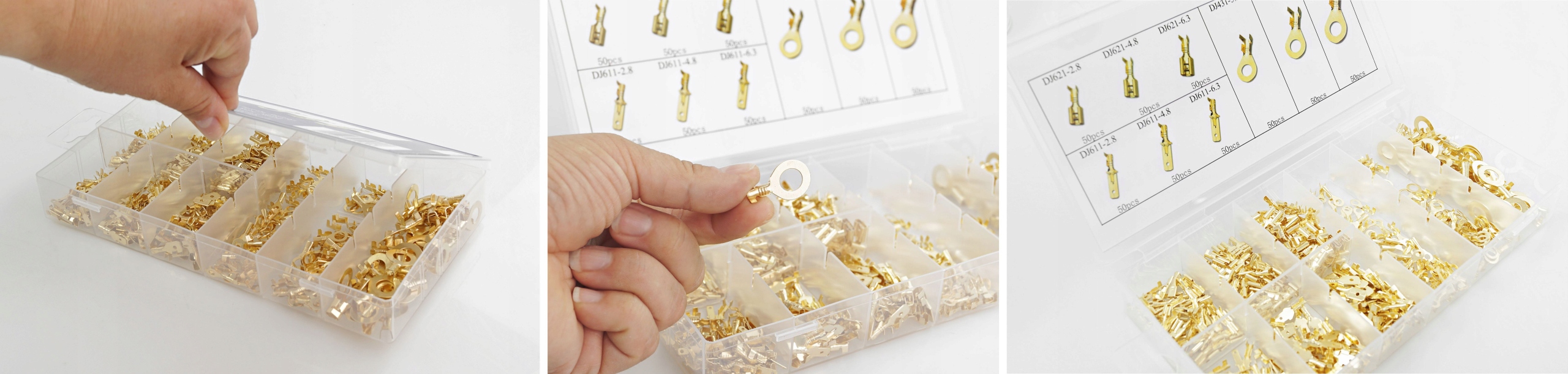 Комплект упакован в пластиковую коробку, рассортированную по размерам, прозрачную - поэтому вы можете легко проверить количество разъемов.