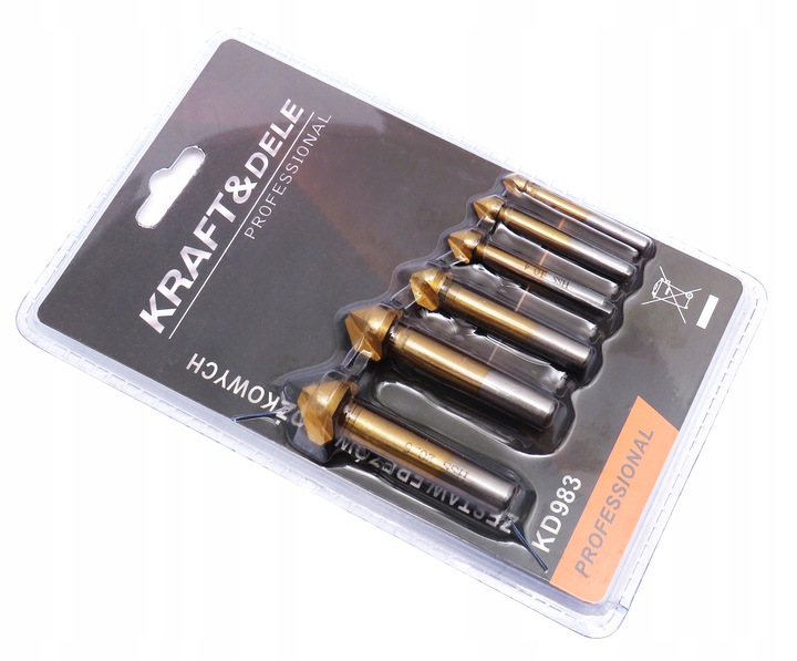 - Набор из 6 шт. зенкеры с тремя лопастями под углом 90° по стандарту DIN 335-C.