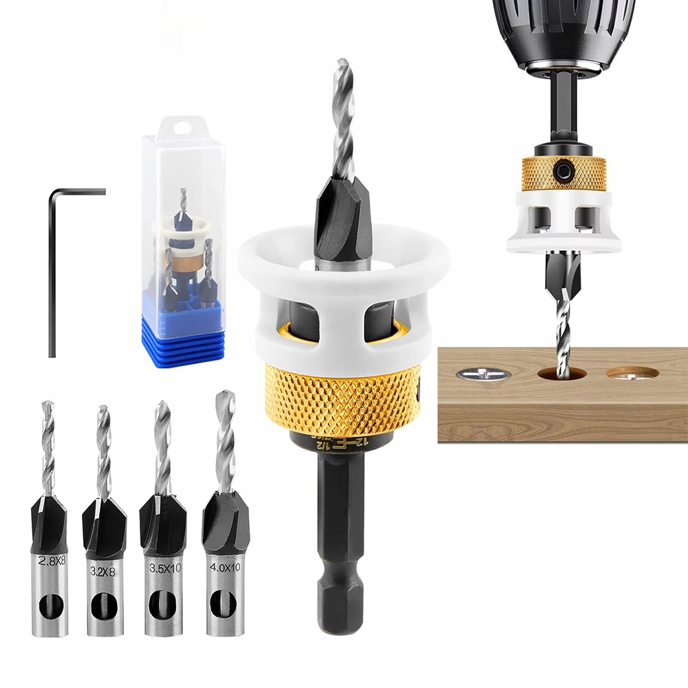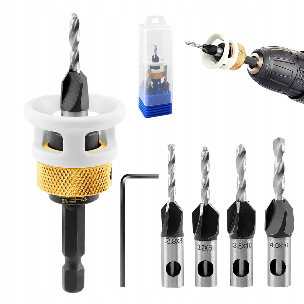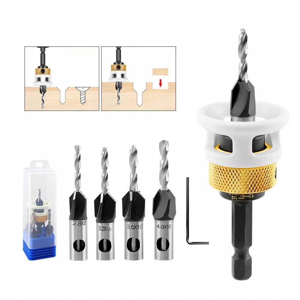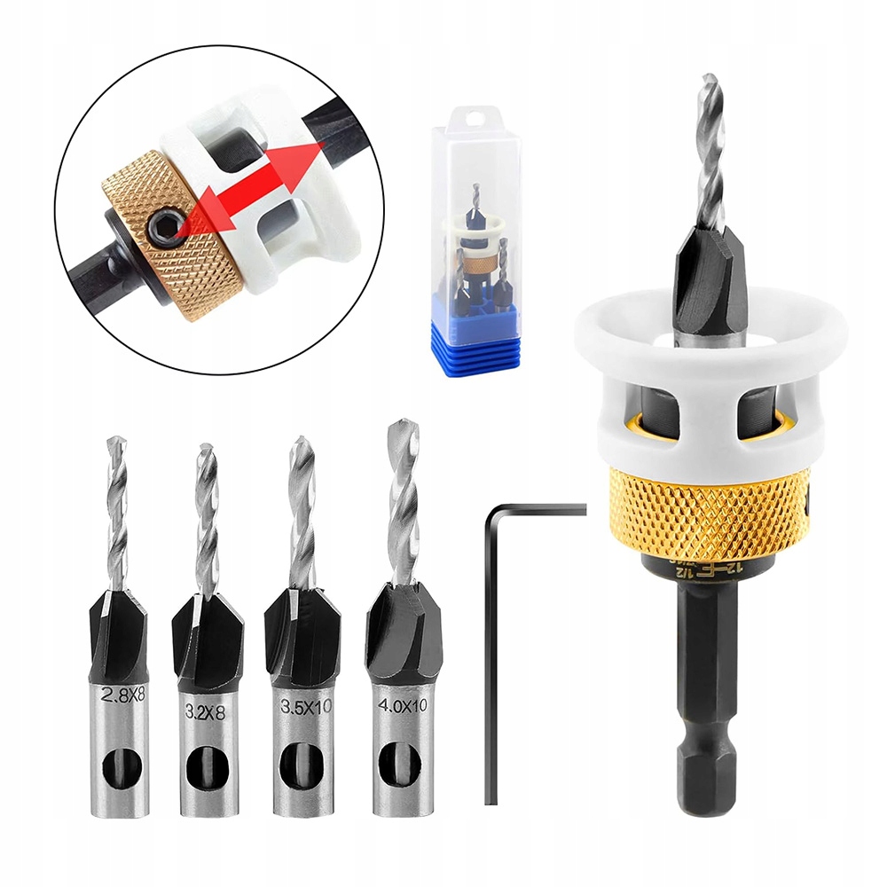 НАБОР КОНИЧЕСКИХ СВЕРЛ HSS 2,8/3,2/3,5/4 ММ С ШЕСТИГРАННЫМ КЛЮЧОМ - ДЛЯ ДЕРЕВА И ДОСОК