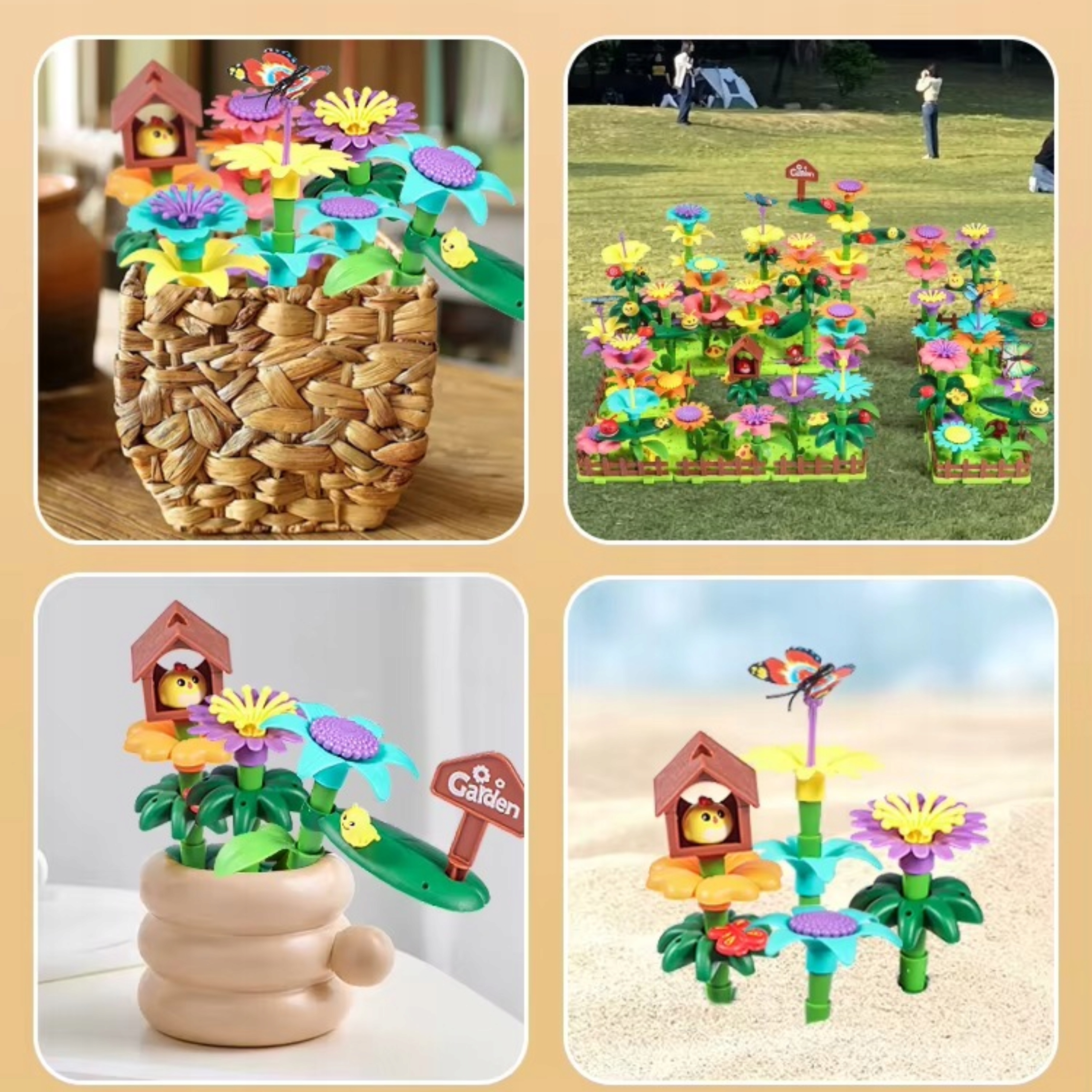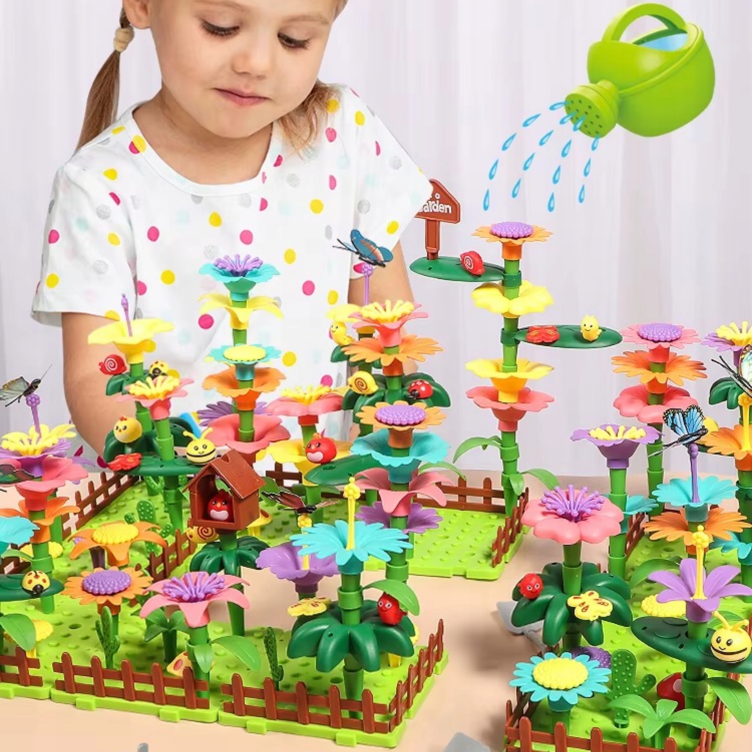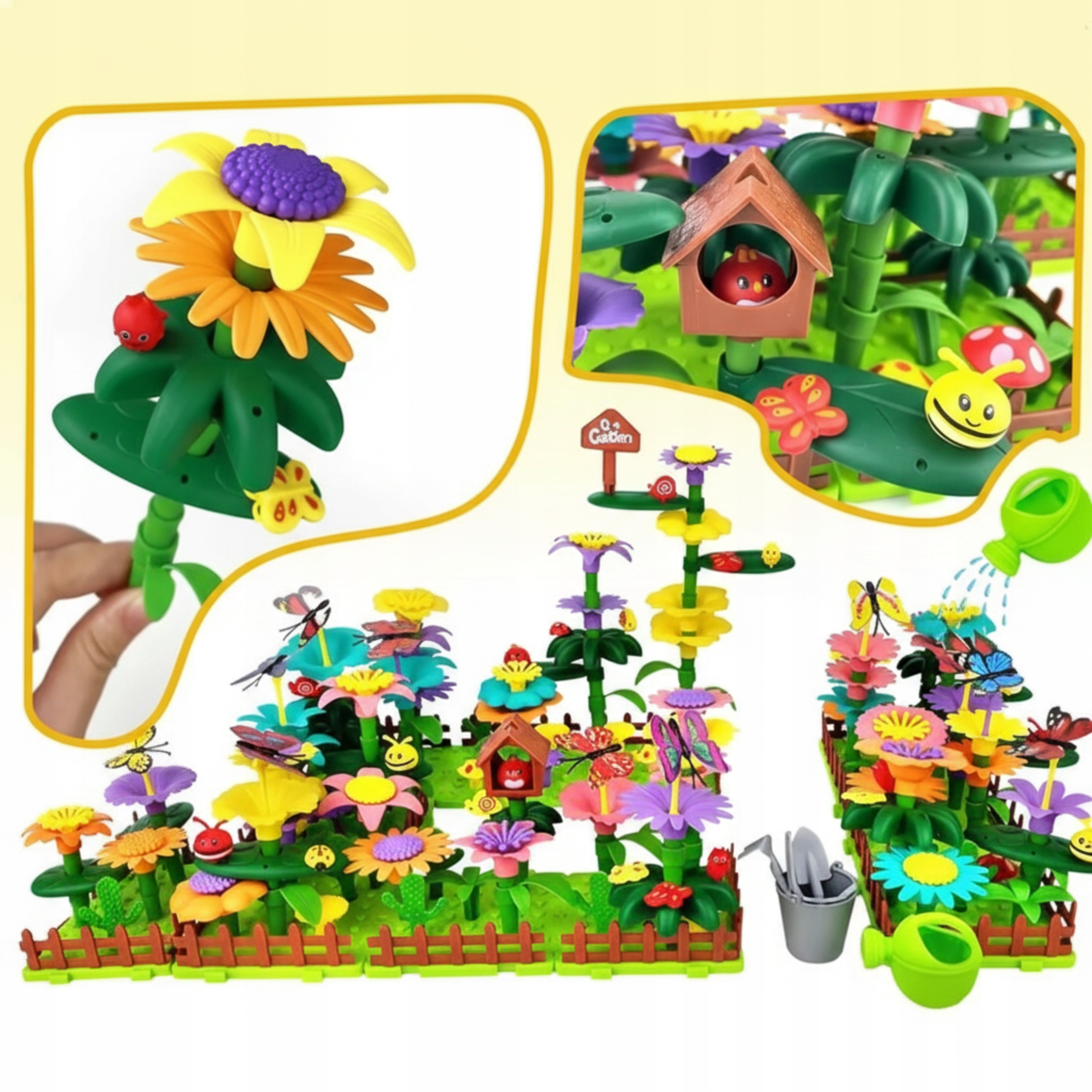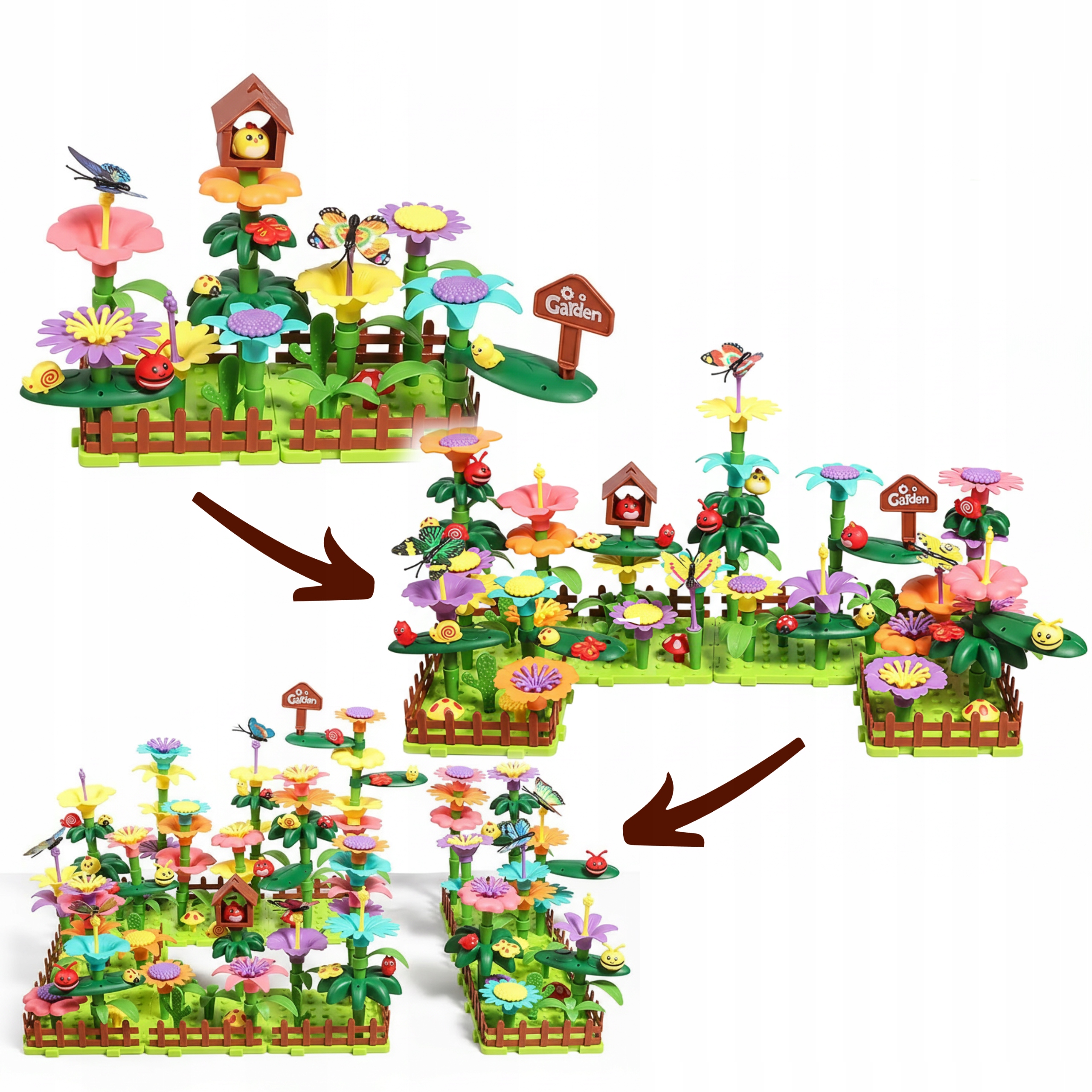 - Увеличенный набор: 332 элемента (включая бесплатные игрушечные инструменты для ухода за цветами, декоративный заборчик и лейку)