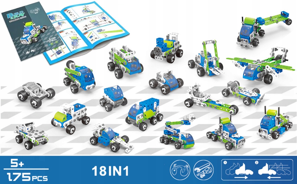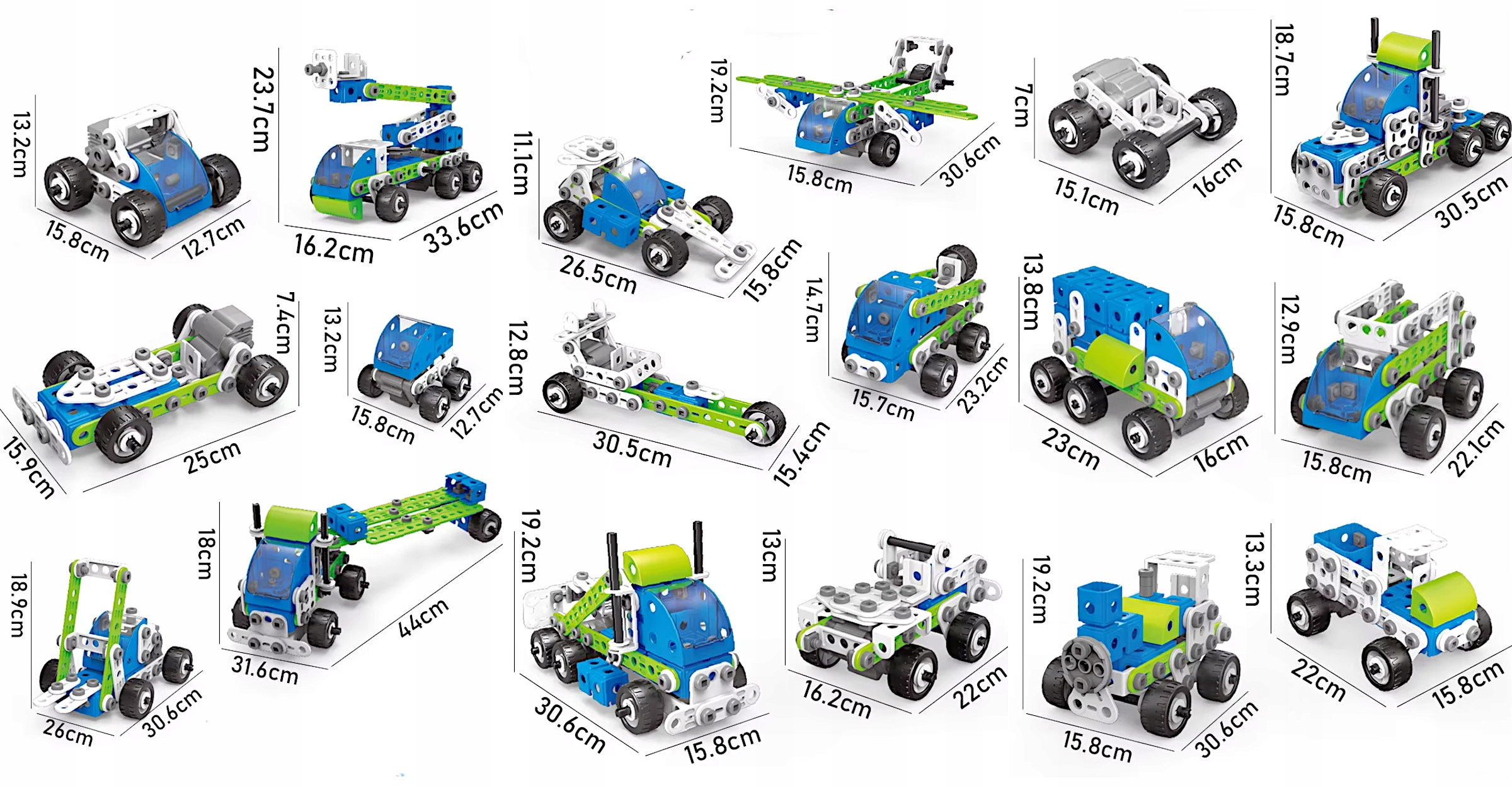 18 моделей - фантастический набор 18IN1 скрывает различные модели транспортных средств, мотоциклов, строительных машин или самолетов.