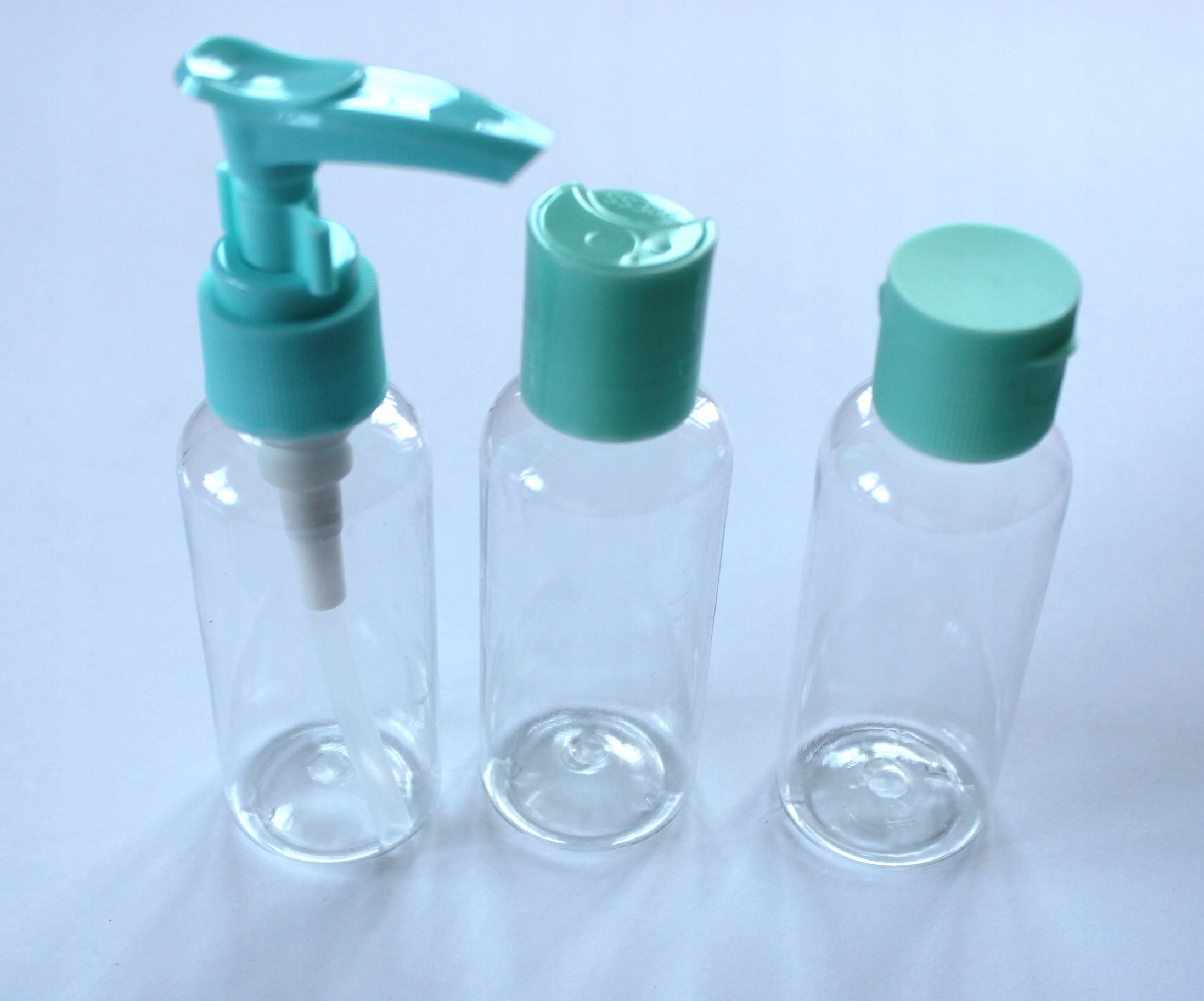 Флакон по 50 мл с помпой и два флакона по 50 мл с завинчивающейся крышкой.