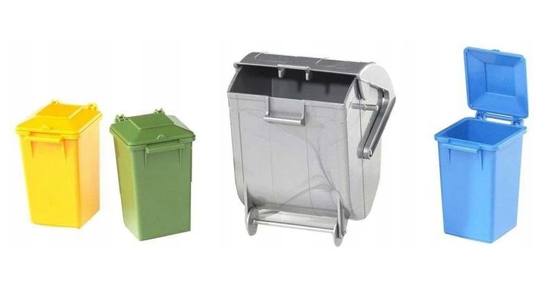 - В комплект входят: 1 большой серый контейнер и 3 маленьких контейнера желтого, синего и зеленого цветов.
