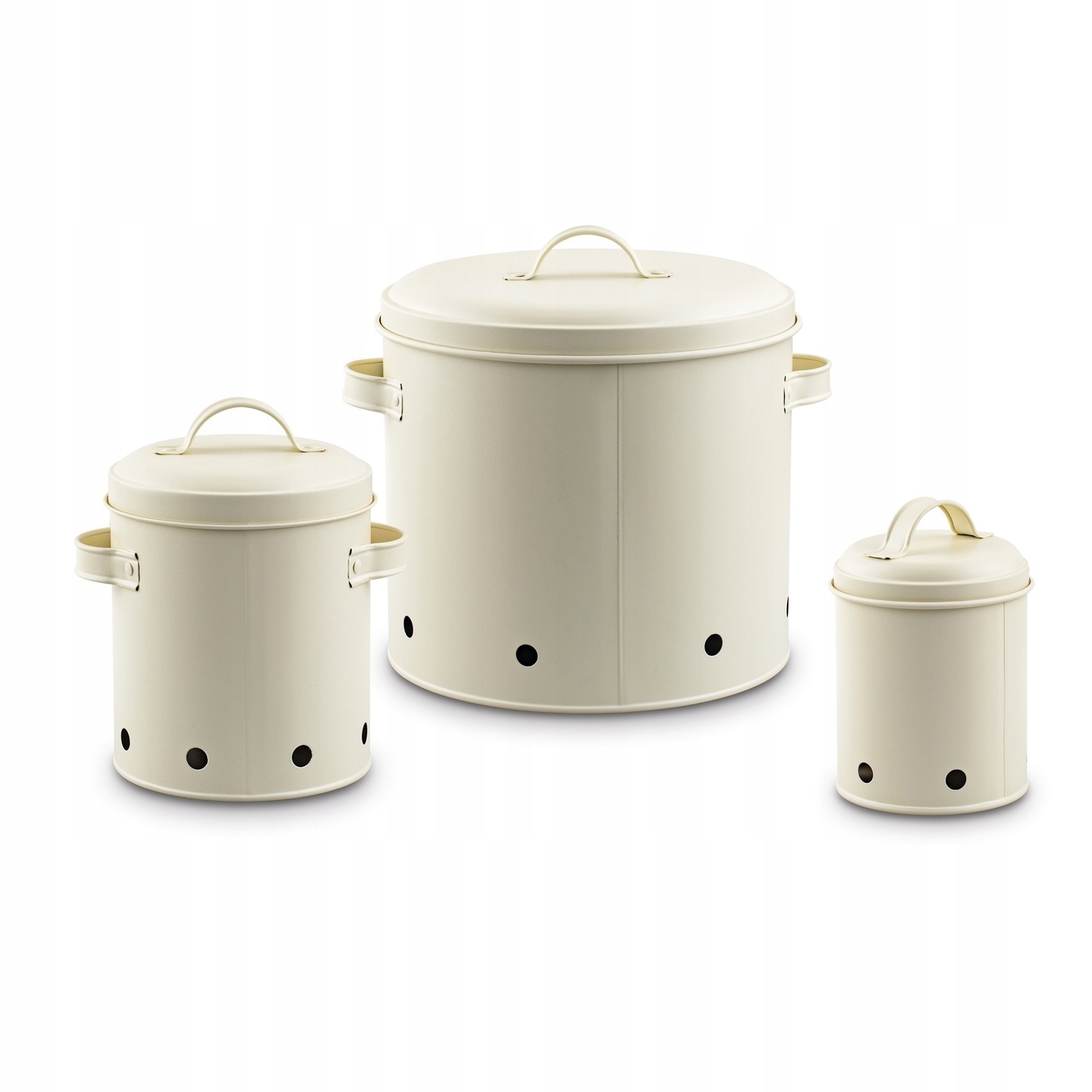 Набор из 3 кухонных контейнеров Tadar Potatoes Onion Garlic изготовлен из металла и покрыт порошковой краской кремового цвета. Тела украшены надписями, поясняющими, для чего используется каждое из них. Таким образом, вы можете гигиенично хранить удобный запас чеснока, лука и картофеля. Каждый контейнер имеет отверстия для подачи и регулирования потока воздуха внутри. Благодаря этому вы обеспечите свежесть содержимого и хорошую вентиляцию банок. Прежде всего, вы оборудуете домашнюю кухню декоративным и функциональным гарнитуром. У каждого контейнера есть соответствующая крышка, а у двух самых больших есть ручки. Однако они различаются размерами: 11,5 х 11,5 х 16 см (для чеснока), 18 х 14,5 х 20 см (для лука) и 27 х 22,5 х 24 см (для картофеля на несколько килограммов). Вы узнаете, что находится внутри, с первого взгляда (не открывая!). Более того, вы будете поддерживать порядок на кухне и организовывать место для этих трех важных кулинарных ингредиентов. Простая форма кухонных банок Tadar облегчает уход и делает их устойчивыми на домашней кухне.