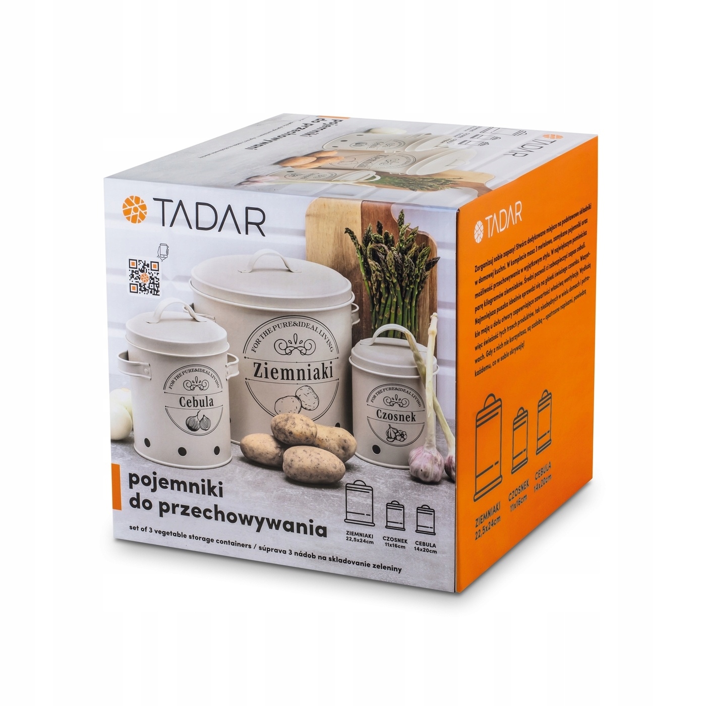 Набор из 3 металлических кухонных контейнеров Тадар Картофель Лук Сливочно-чесночный