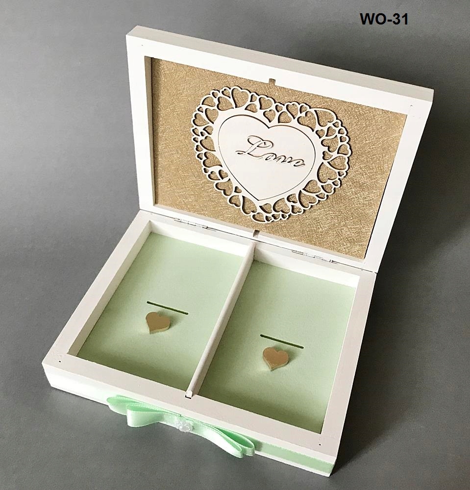 Набір коробки для конвертів 30х30 + срібні каблучки