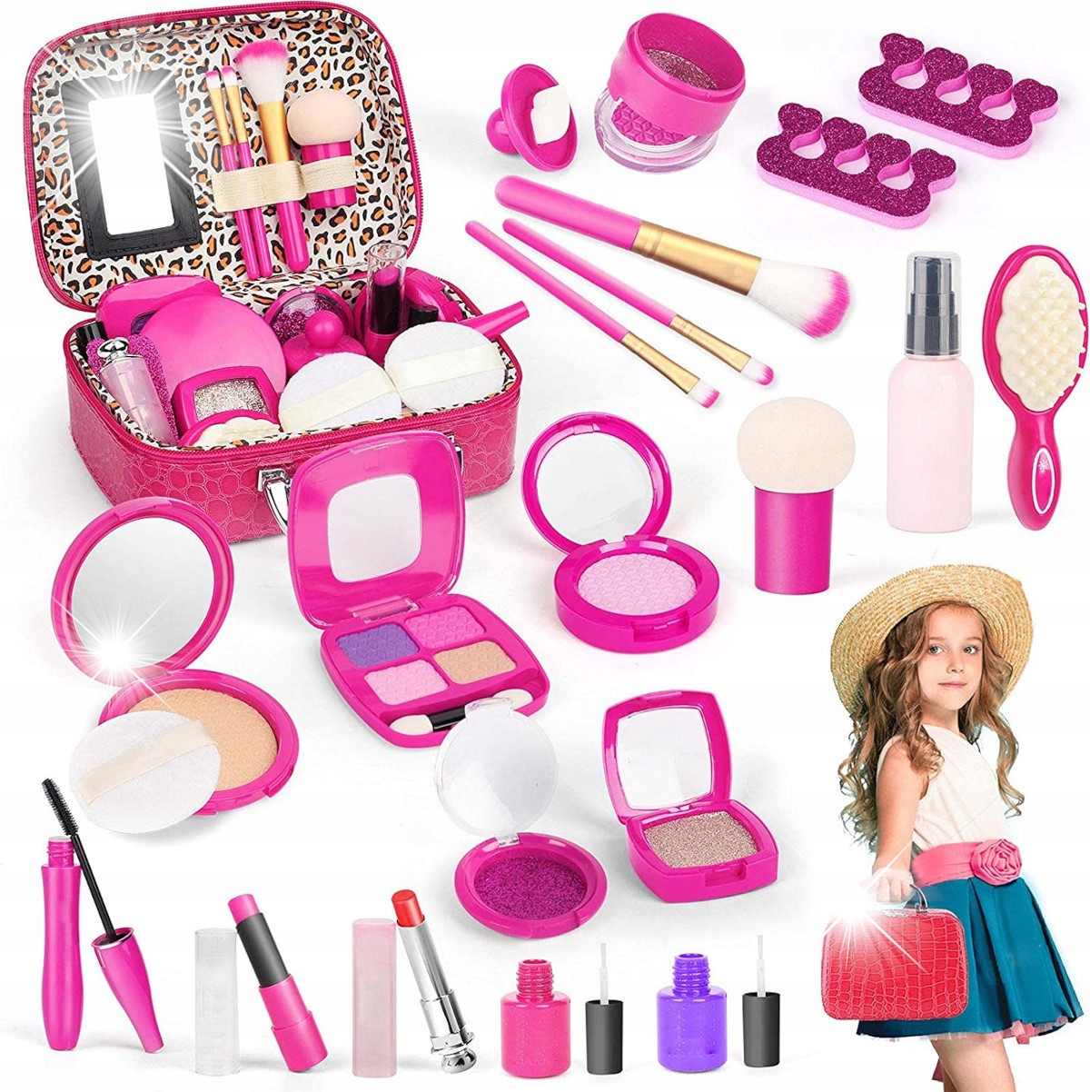 ⭐ Дизайн косметического футляра большой вместимости позволяет маленьким девочкам играть со своими любимыми косметическими игрушками где угодно, например, в путешествии, на макияжных вечеринках и т. д. Чемодан портативен и удобен для переноски, что позволяет маленьким девочкам хранить и мыть после игры.< /п>
