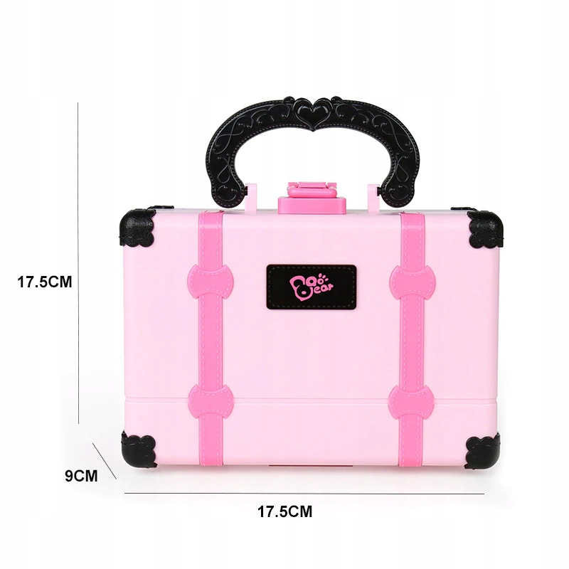 Вся косметика упакована в красивый розовый футляр размерами 17,5 см (высота) х 17,5 см (ширина) х 9 см (г)