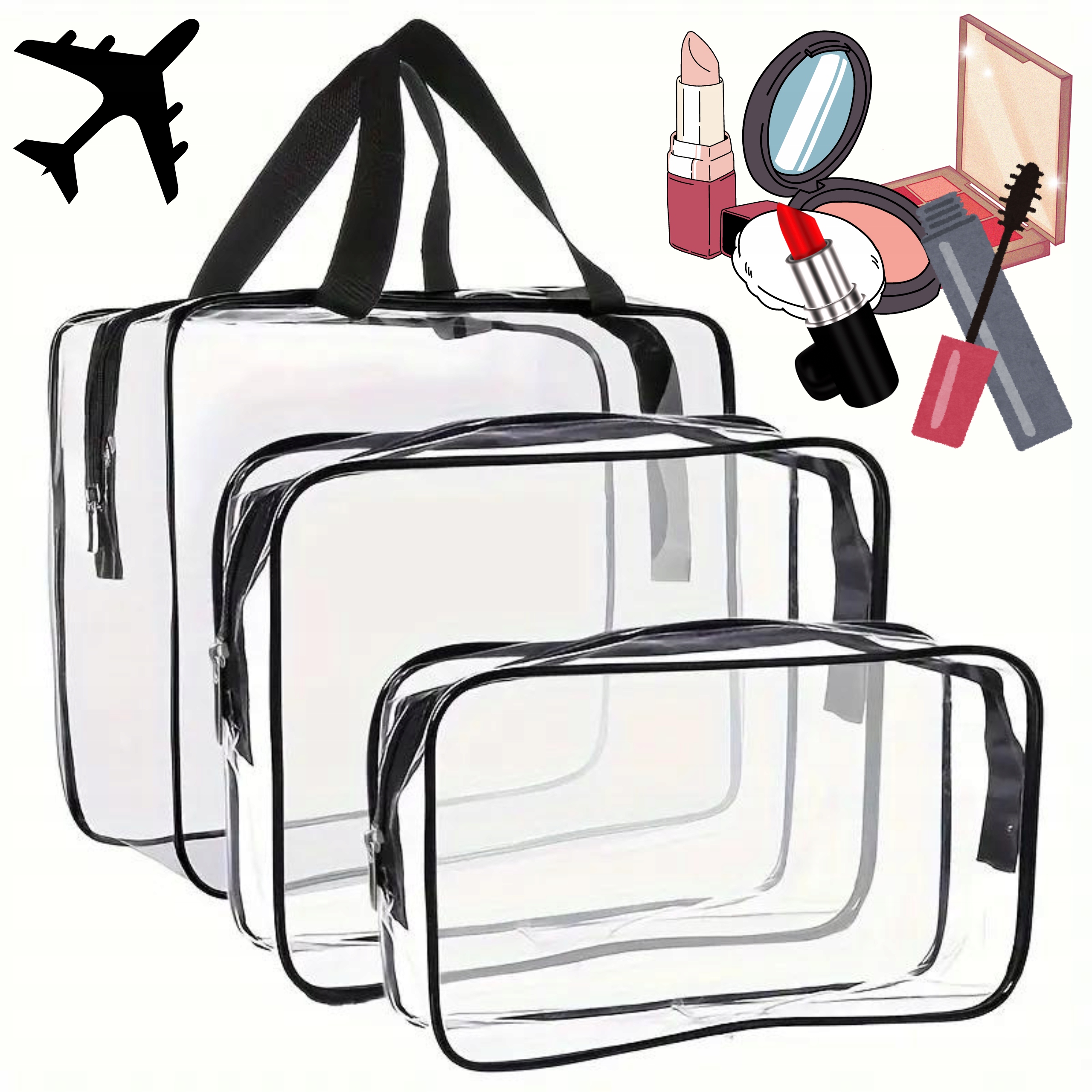 - Прозрачность для более легкого доступа: Прозрачный материал позволяет быстро увидеть контент, обнаруживая продукты, которые вам нужны, в одно мгновение. Идеальное решение также при осмотре в аэропорту.