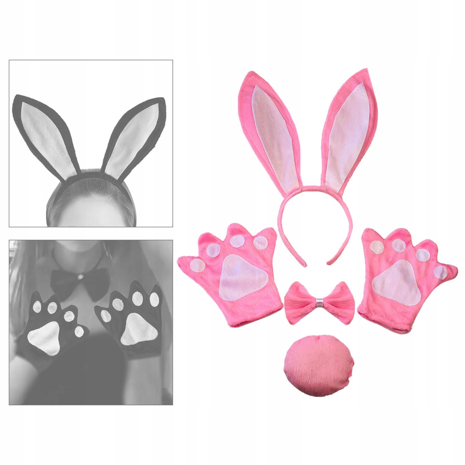 Комплект костюма кролика из 4 предметов, повязка на голову с милыми кроличьими ушками, повязка на голову для детей, взрослых, розовая