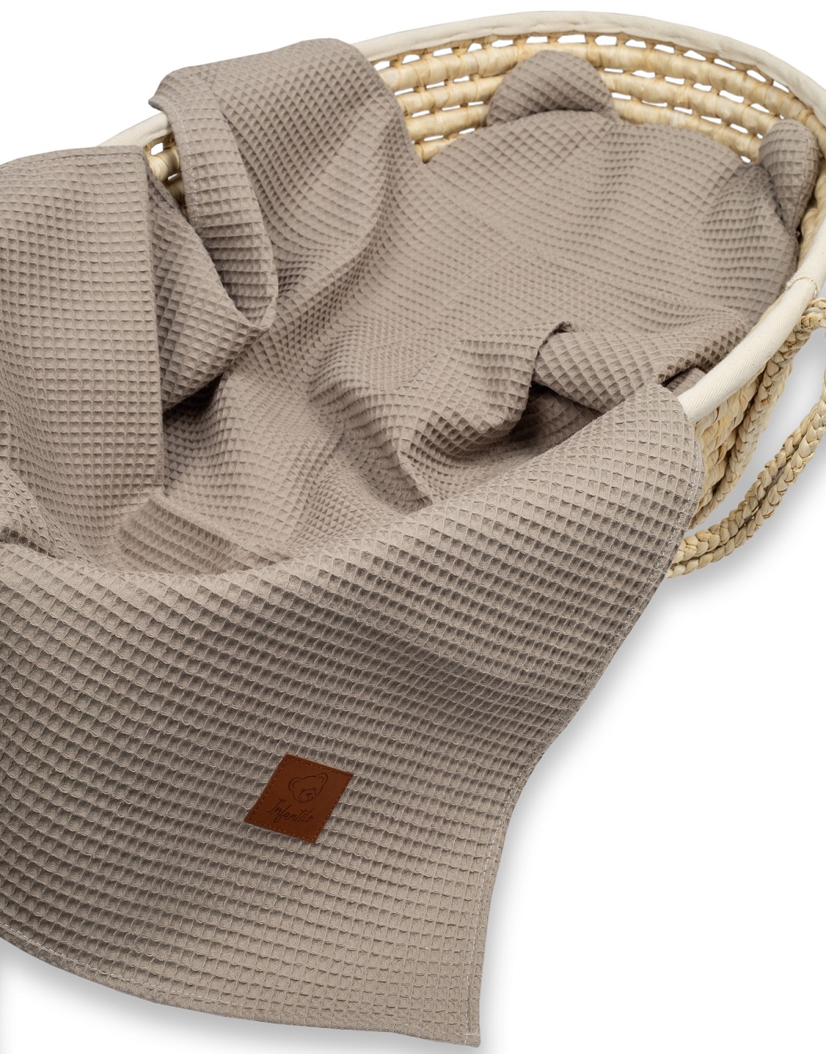 Интересное переплетение хлопка позволяет комплекту «ВАФЛЯ» служить еще и декоративным элементом для комнаты и детской коляски.