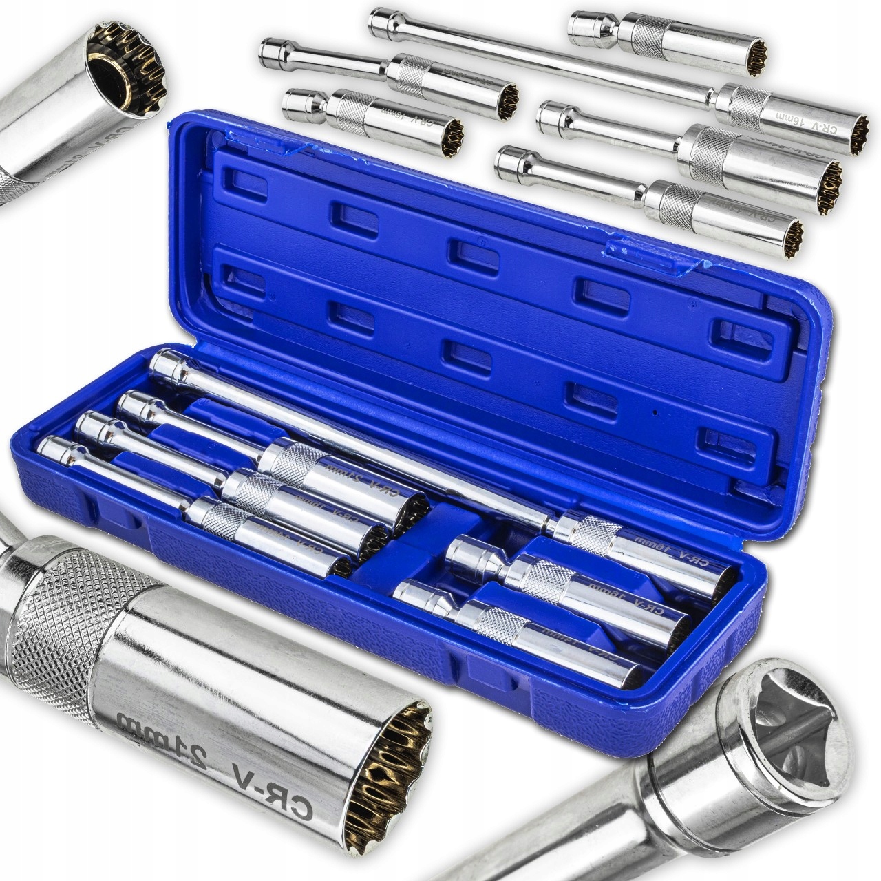 Проводный набор из 6 свечей зажигания из хромированной стали (CRV), предназначенного как для автомобильных мастерских, так и для дома. Благодаря формулированной структуре и различной длине привязанности, можно работать даже в очень трудных местах.