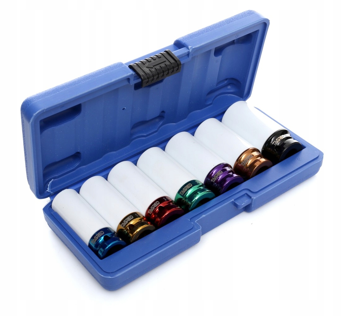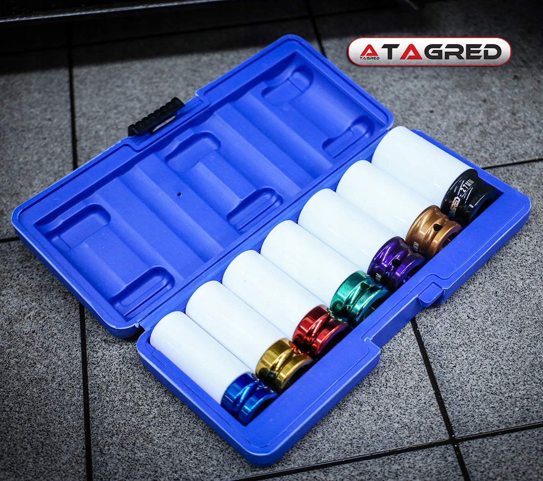 Набор торцевых головок TAGRED предназначенных для алюминиевых дисков – это предложение для профессионалов, а также для всех автомобилистов, имеющих автомобиль с алюминиевыми дисками. Наши розетки имеют специальный слой покрытия, который защищает диски от повреждения лакокрасочного покрытия. Они сводят к минимуму возможность появления возможных царапин при сборке колес.