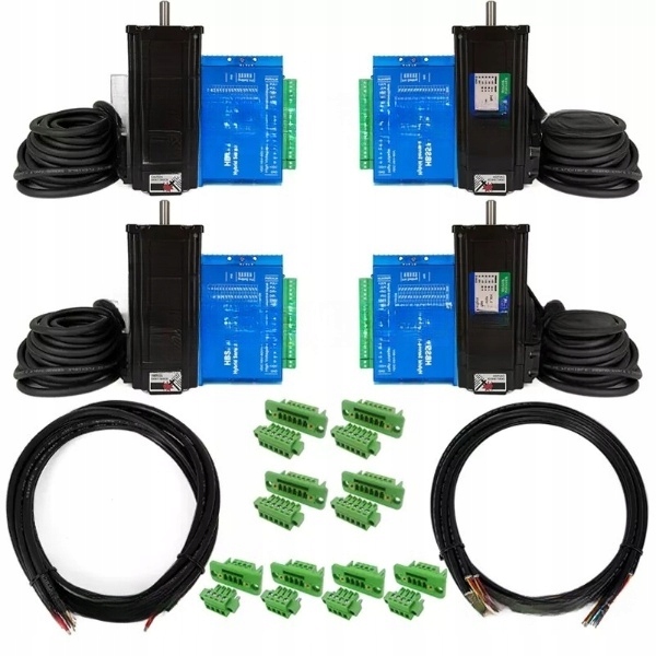 - 4 двигателя 57HSE3N 3 Нм с кабелем двигателя (5 м) и кабелем энкодера (5 м). li>