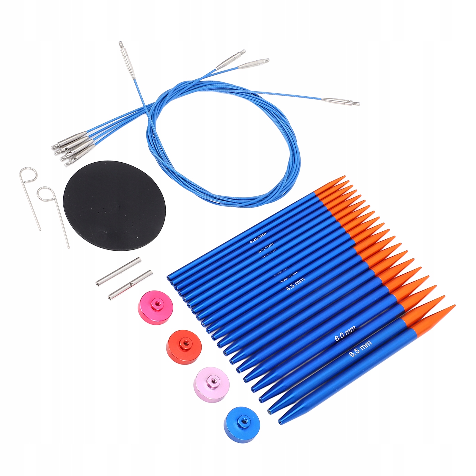 - Размер круговых спиц: прибл. 3,0 мм/0,12 дюйма, 3,25 мм/0,13 дюйма, 3,5 мм/0,14 дюйма, 3,75 мм/0,15 дюйма, 4,0 мм/0,16 дюйма, 4,5 мм/0,18 дюйма, 5,0 мм/0,20 дюйма, 5,5 мм/0,22 дюйма, 6,0 мм/0,24 дюйм, 6,5 мм/0,26 дюйма, по 2 шт.