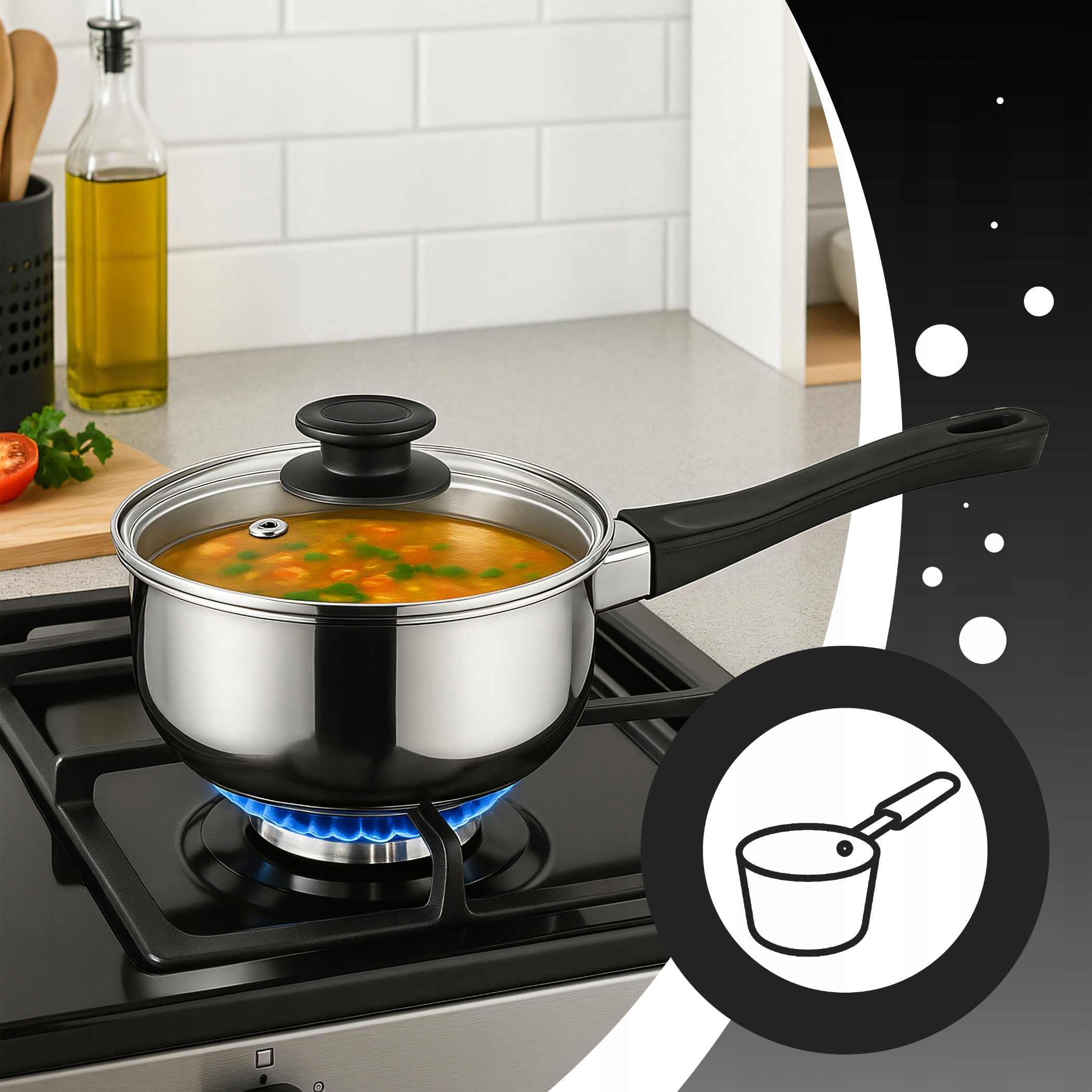 Идеально подходит для приготовления воды на различных видах плитов, включая индукцию. Благодаря эргономичной ручке использование удобно и безопасно, а прочная конструкция обеспечивает долговечность.