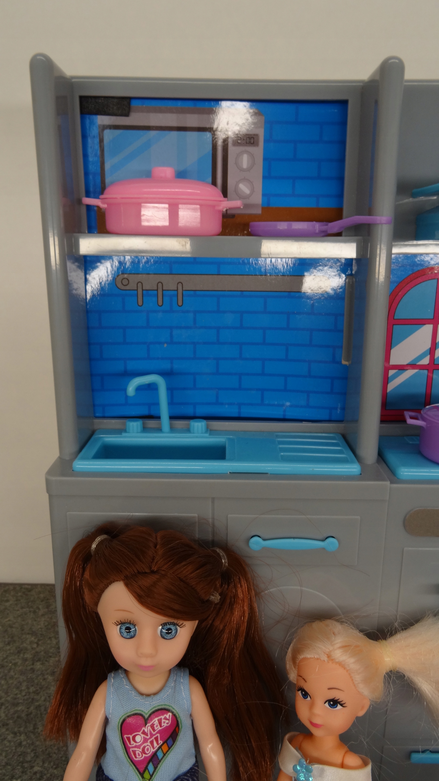 Состояние: б/у, куклы в очень хорошем состоянии, бумажная задняя стенка на кухне со слезой. Внешний вид как на фотографиях.