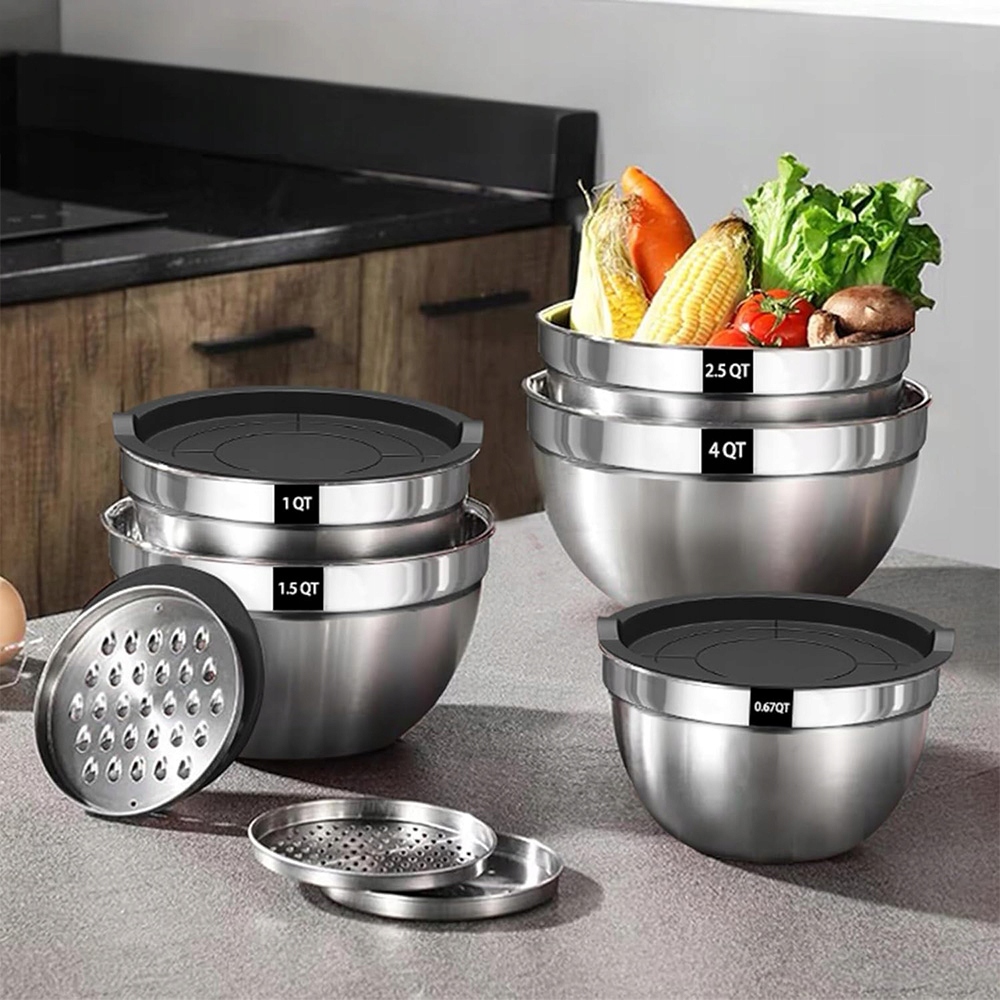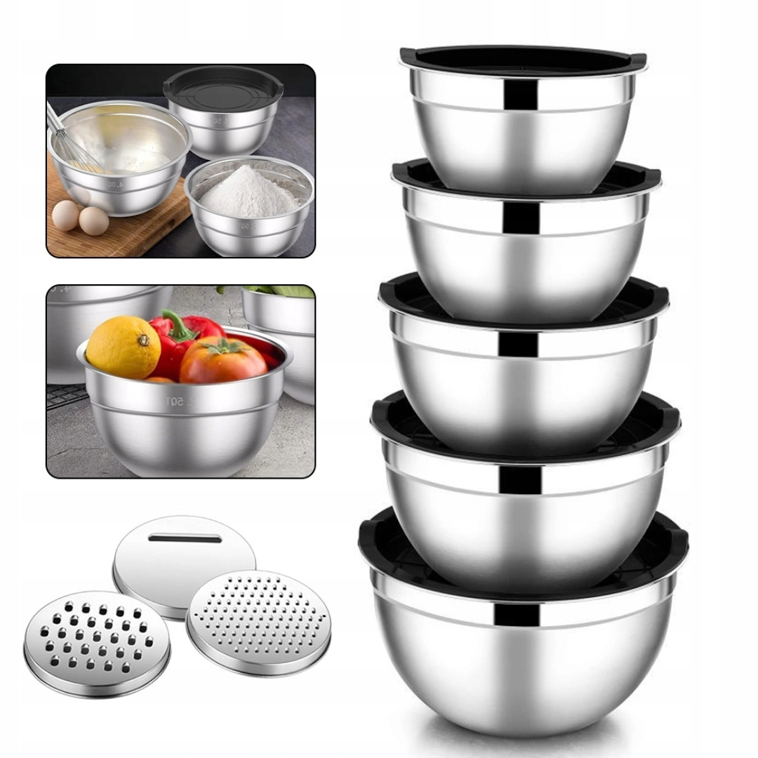 НАБОР КУХОННЫХ МИСШЕК 5 ШТ. 4,5 Л, 2,7 Л, 1,6 Л, 1,1 Л НЕРЖАВЕЮЩАЯ СТАЛЬ ДЛЯ ЕДЫ