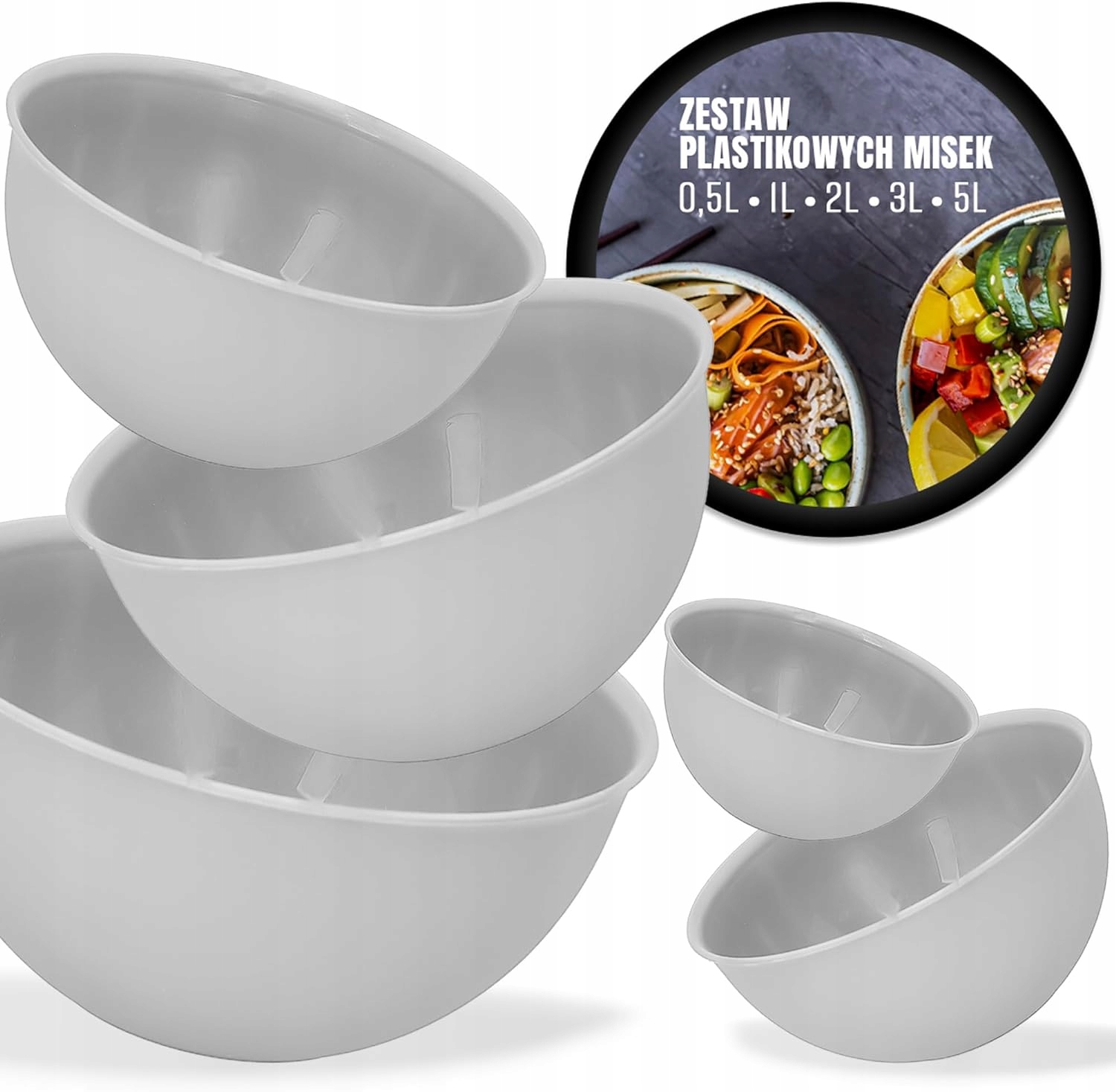 НАБІР КУХОННИХ МИСКІВ ПЛАСТИКОВІ МИСКІ 5 шт КРУГЛА МИСКА