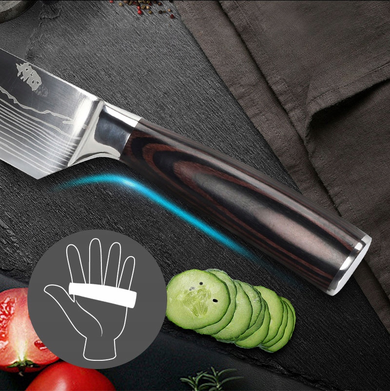 - 18 см Santoku Knife - идеально подходит для нарезки, шинковки и нарезки ломтиками;