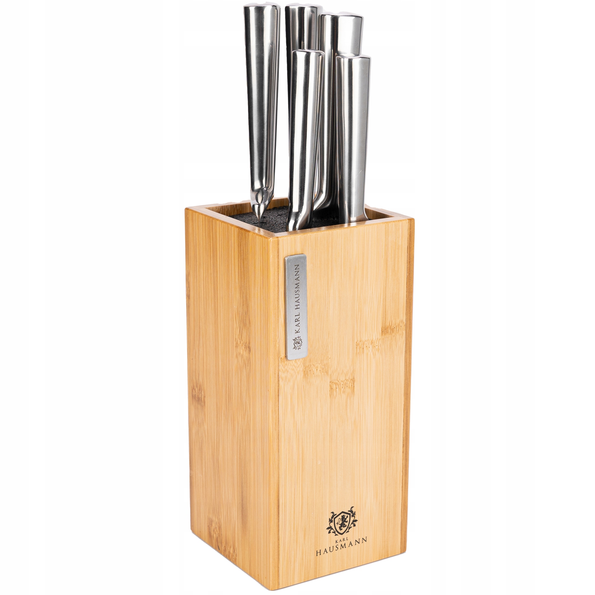 Так что кухонные ножи Karl Hausmann порадуют нас их надежность для максимально длительного срока службы и красивый внешний вид, мы рекомендуем стирать их вручную. Мытье ножей в посудомоечной машине из-за высокой температуры воды и воздействия химикатов может привести к необратимому повреждению лезвий и ручек ножей.