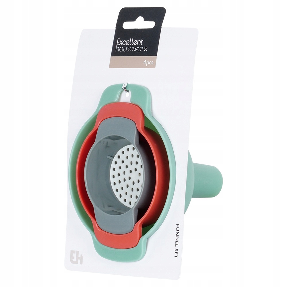 Набор кухонных воронок трех разных размеров с удобным ситечком. Чрезвычайно практичный и долговечный. Они будут хорошо работать на любой кухне. Благодаря воронкам разных размеров наполнять бутылки, стаканы и контейнеры чрезвычайно легко. Полезен при розливе напитков, а также при разливе сухих продуктов. Полностью безопасен для здоровья и пищевым нейтральен. Изготовлено в соответствии с европейскими стандартами.