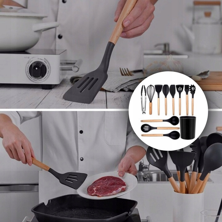 НАБОР КУХОННОЙ ПОСУДЫ СИЛИКОНОВАЯ ДЕРЕВЯННАЯ КУХОННАЯ ПОСУДА 12 EL