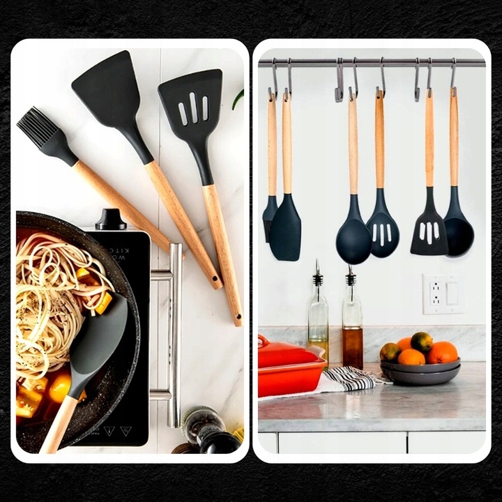 НАБОР КУХОННОЙ ПОСУДЫ СИЛИКОНОВЫЙ ДЕРЕВЯННЫЙ КУХОННАЯ ПОСУДА 12 EL