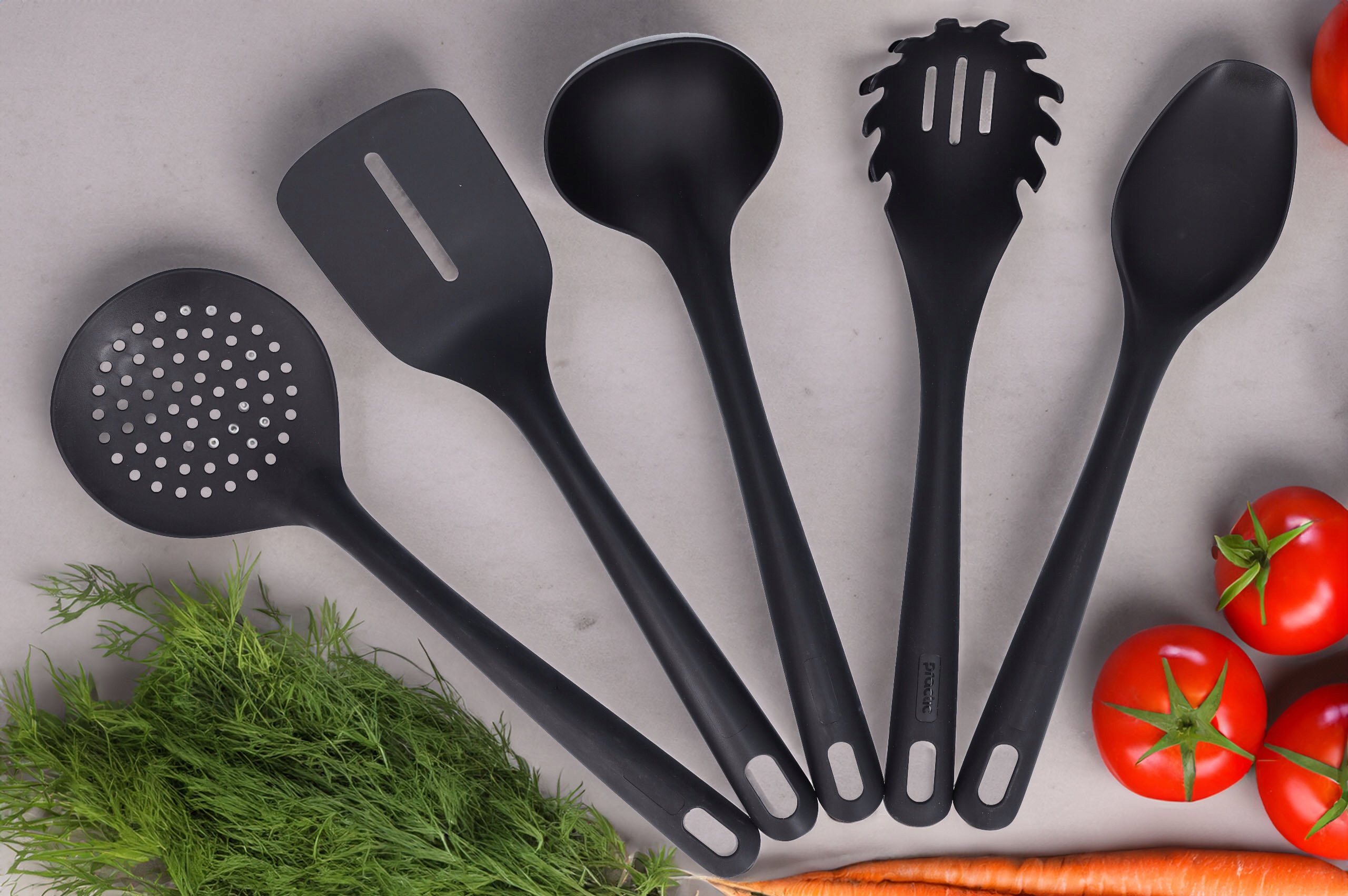 ✅ Полный набор - набор из 5 кухонных посуды в практическом контейнере, обеспечивая легкий доступ к наиболее необходимым кухонным инструментам. b> Цвет: черный