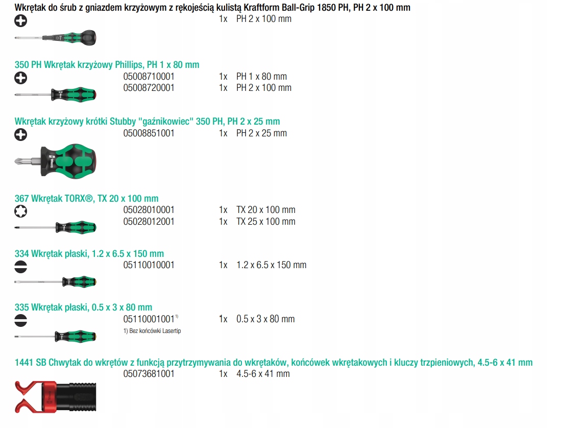 - Набор отверток из 9 предметов для Pozidriv , винты TORX ® и винты со шлицем
