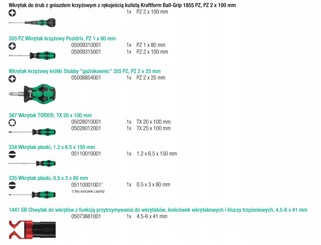 - Набор отверток из 9 предметов для Pozidriv , винты TORX ® и винты со шлицем