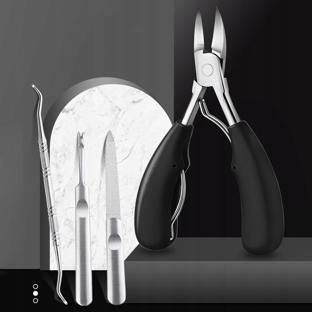Набір кусачок для нігтів з ручкою, кусачки для нігтів на ногах 4 в 1, чорні