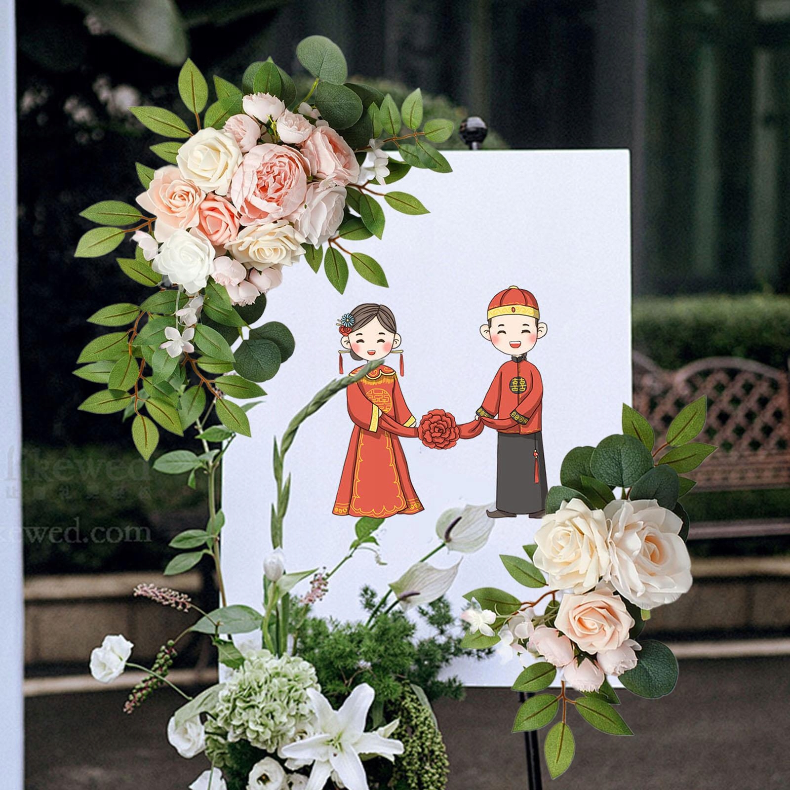 [высококачественный материал]: Этот набор цветов в форме свадебной арки сделан из высококачественного шелка и может похвастаться красивым видом. Это требует минимального ухода, и наш цветочный венок всегда будет расцвести.