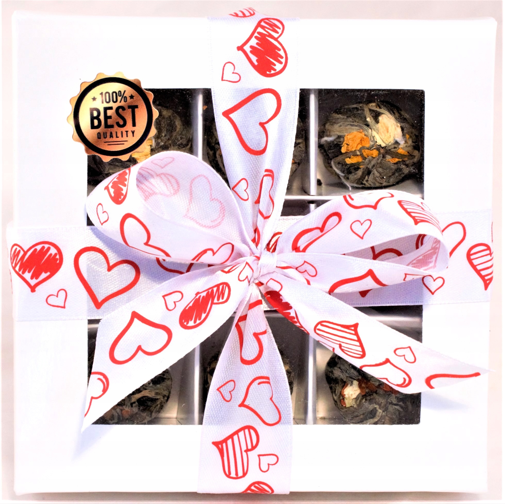 Шоколадная коробка с содержанием 9 чая h1> процветающего белого, зеленого h1> в белом в 3 различных дизайнах h1> , связанной с декоративной лентой (различные дизайны) h1>