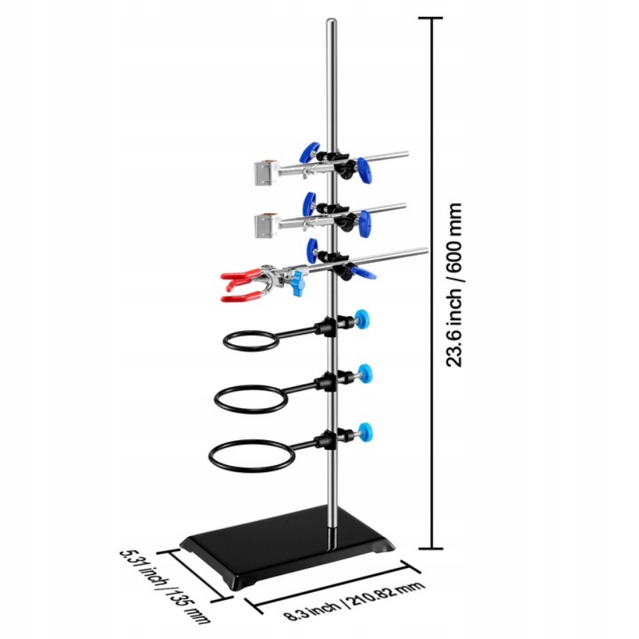 SET Лабораторный штатив 60 см, стальной штатив с принадлежностями, зажимами и ручками