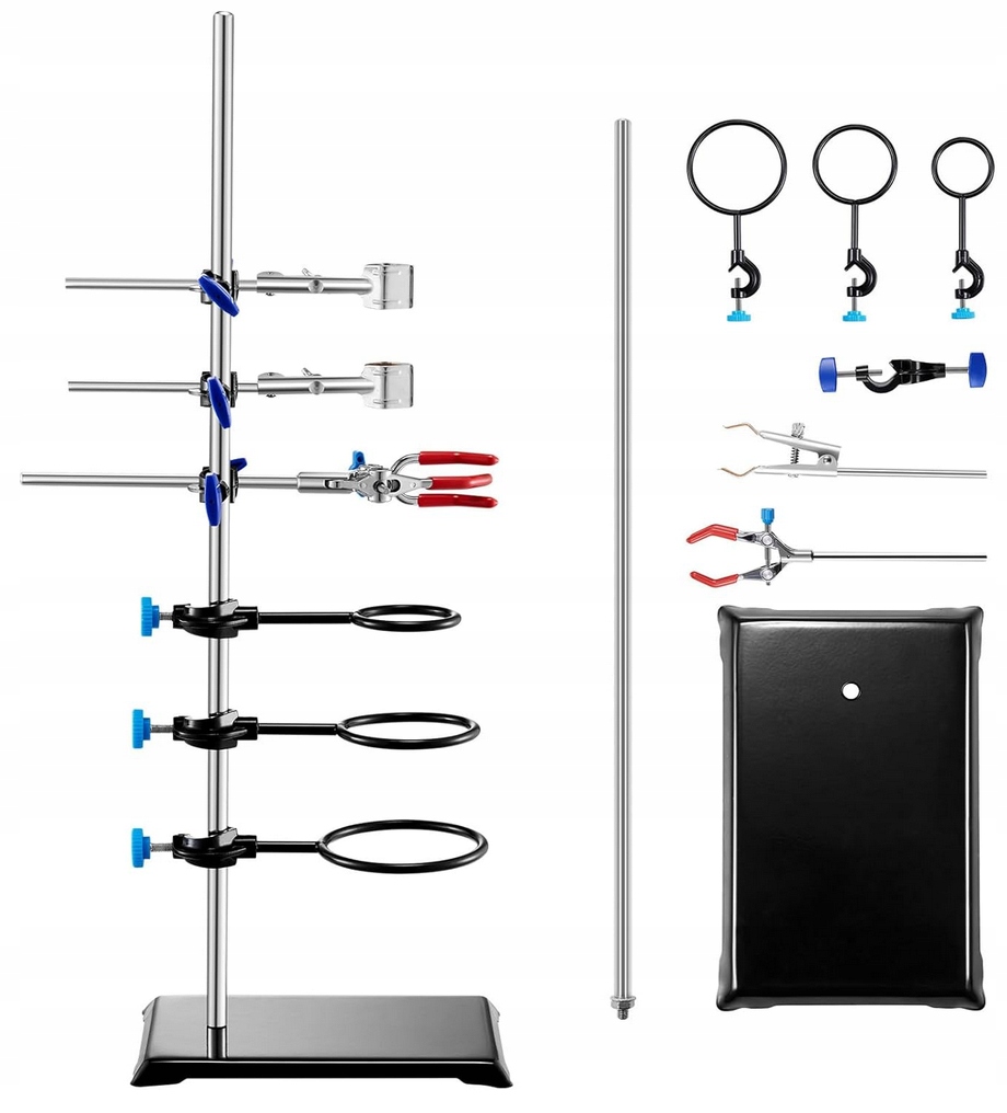 - Лабораторные кольца: Три разных диаметра для поддержки колб, воронок или сеток.