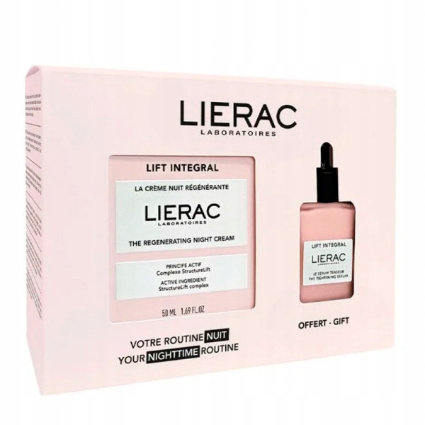 - Набор Lierac Lift Integral содержит регенерирующий ночной крем и мини-подтягивающую сыворотку.