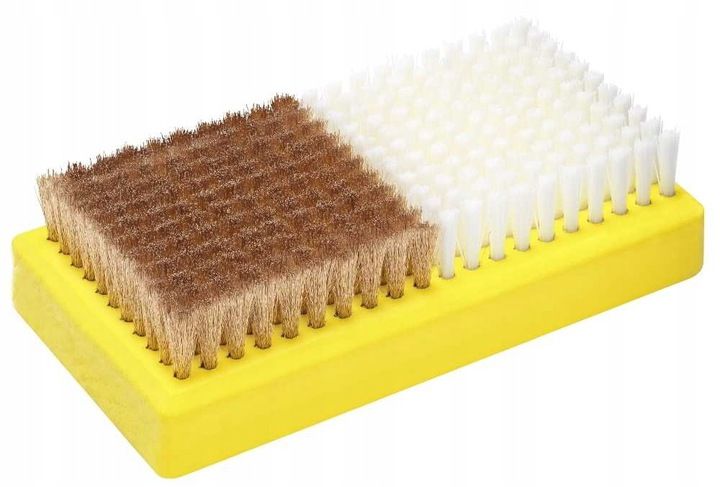 Кисть прямоугольная комбинированного типа с медно-нейлоновой щетиной от швейцарской компании TOKO, модель Base Brush Combi Nylon/Copper, б/у для очистки основания перед смазкой и для структурирования с одной стороны, а с другой - для окончательной полировки после процесса смазки.