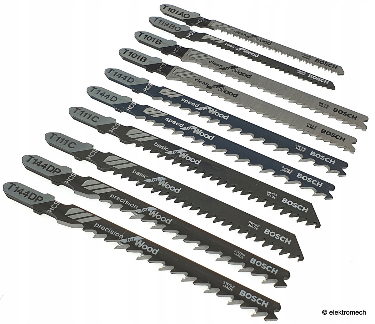 В комплект входят пильные полотна, подходящие для прямых и криволинейных пропилов в древесине.