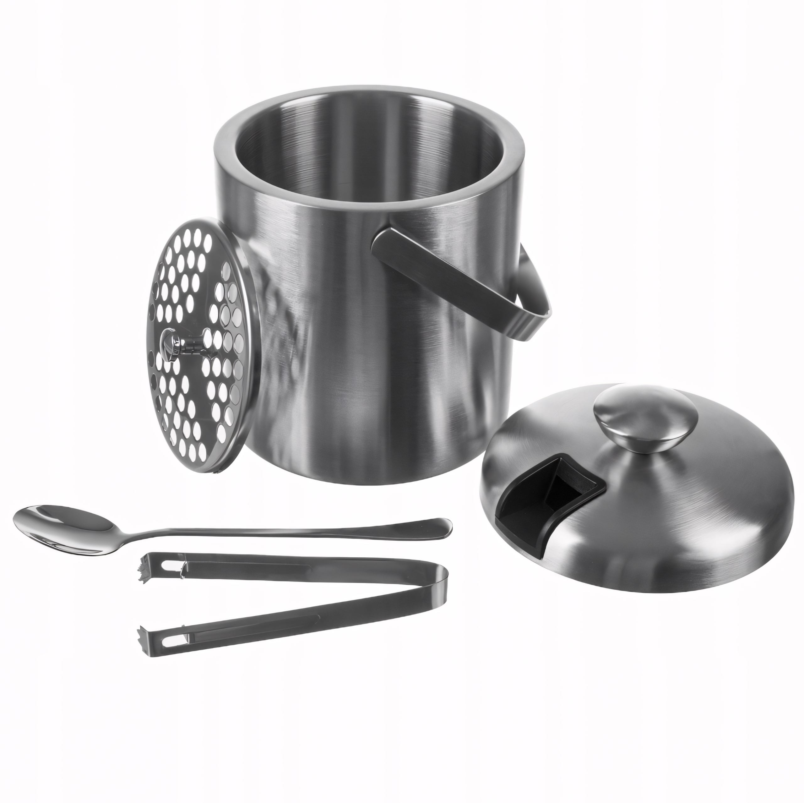 НАБОР ДЛЯ ЛЬДА СЕРЕБРЯНОЕ ВЕДРО ТЕРМОС 1,3 Л + ЩИПЦЫ ДЛЯ ЛОЖКИ СЕТЧИК С КРЫШКОЙ